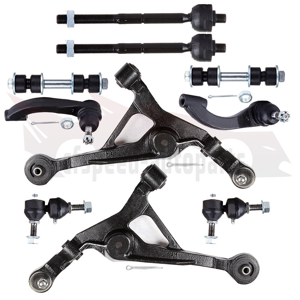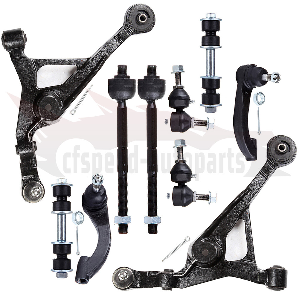 1.Fit For: Cfspeed-autoparts 10PCS Front Lower Control Arm Tie Rod End Sway Bar For 2001-2006 Dodge Stratus 1.Fit For: 1985-1988 Chevrolet Nova 1995-2000 Chrysler Cirrus 1996-2006 Chrysler Sebring 1978-1981 Datsun 510 1979-1982 Dodge D50 1983-1991 Dodge Ram 50 1995-2006 Dodge Stratus 1991-2001 Ford Escort 1989-1992 Ford Probe 1990-1994 Hyundai Excel 1991-1995 Hyundai Scoupe 2010-2017 Jeep Compass 2010-2017 Jeep Patriot 1988-1999 Mercury Tracer 1983-1986 Mitsubishi Mighty Max 1985-1996 Mitsubishi Mirage 1990-1994 Mitsubishi Precis 1987-1995 Nissan Pathfinder 1979-1980 Plymouth Arrow 1979-1980 Plymouth Arrow Pickup 1996-2000 Plymouth Breeze 1974-1984 Toyota Celica 1974-1992 Toyota Corolla 1979-1982 Toyota Corona 1983-1984 Toyota Cressida 1979-1995 Toyota Pickup 1980-1982 Toyota Tercel1995-2000 Chrysler Cirrus 1996-2006 Chrysler Sebring 1995-2006 Dodge Stratus 1996-2000 Plymouth Breeze1995-2000 Chrysler Cirrus 1996-2006 Chrysler Sebring 1995-2006 Dodge Stratus 1996-2000 Plymouth Breeze1995-2000 Chrysler Cirrus 1996-2006 Chrysler Sebring 1995-2006 Dodge Stratus 1996-2000 Plymouth Breeze1995-2000 Chrysler Cirrus 1996-2006 Chrysler Sebring 1995-2006 Dodge Stratus 1996-2000 Plymouth Breeze1995-2000 Chrysler Cirrus 1996-2006 Chrysler Sebring 1995-2006 Dodge Stratus 1996-2000 Plymouth Breeze1978-1980 AMC Pacer 1985-1988 Chevrolet Nova 1995-2000 Chrysler Cirrus 2001-2006 Chrysler Sebring 1995-2006 Dodge Stratus 1993-1996 Eagle Summit 1993-1995 Hyundai Scoupe 1988 Mitsubishi Galant 1985-1996 Mitsubishi Mirage 1989-1990 Mitsubishi Sigma 1987-1995 Nissan Pathfinder 1996-2000 Plymouth Breeze 1974-1984 Toyota Celica 1974-1992 Toyota Corolla 1980-1982 Toyota Tercel 2.Package Includes: 2X-K7306-Front Sway Bar End Link 2X-EV323-Front Inner Tie Rod End 1X-K7425-Front Lower Control Arm And Ball Joint - Driver Side 1X-K7427-Front Lower Control Arm And Ball Joint - Passenger Side 1X-ES80360-Front Outer Tie Rod End - Passenger Side 1X-ES80361-Front Outer Tie Rod End - Driver Side 2X-K90308-Front/Rear Sway Bar End Link 3.Note Although some parts have grease fittings, other parts are factory sealed, but do not affect the fit and quality of the parts. 10 Year Warranty Please check above compatibility list to make sure it fits your vehicle. Ball Joint Ball joints may be grouped into two classifications, load carrying and non-load carrying. Ball joints may be manufactured with forged, stamped, cold-formed, or screw-machined housings. The coil spring is seated on the control arm to which the load-carrying ball joint is attached. For example, when the coil spring is mounted between the lower control arm and the chassis, the lower ball joint is a load-carrying joint. In a torsion bar suspension, the load-carrying ball joint is mounted on the control arm to which the torsion bar is attached. A load-carrying ball joint supports the vehicle weight. Tie-Rod End Replacement Guideline: If you feel a bump in the steering when driving over road bumps or curbs, this might be due to worn tie rod ends or inner tie rods. Clicking noises during sudden steering movements can also be symptoms of a defective tie rod. In order to determine the exact cause and replace the defective tie rod, the car must be elevated with a vehicle lift in order to be examined more closely. This useful tip applies to the exchange of tie rod ends and inner tie rods, which together form the so-called tie rod. Picture(A) Note: Cleanliness is extremely important when working on the power steering. Incorrect work and contamination can lead to leakage and, in the worst case, to failure of the steering assistance. 1.Lift the vehicle and dismount the front axle wheels. 2.Spray the fastening nut of the tie rod end with rust remover and leave it on for a few minutes. Picture(B) 3.Dismount the front underride guard. Picture(C) 4.Loosen the fastening nut from the tie rod and remove it completely. 5.Remove the tie rod end from the steering knuckle using an appropriate ball joint separator. Picture(D) 6.Remove the clamp of the bellow on the steering gear. 7.Push the bellow towards the tie rod end. Picture(E) 8.Unscrew the inner tie rod from the rack. 9.Clean the sealing face of the bellow at the steering gear. Picture(F) 10.Clean the lug of the rubber contact surface of the ball joint in the steering knuckle. Note:Always use new self-locking nuts and bolts for a reliable repair. 11.Screw the new inner tie rod into the rack and tighten it with the tightening torque that has been specified by the vehicle manufacturer. Picture(G) 12.Mount the bellow and close the clamps with the appropriate special tool. Note:Incorrect mounting of the bellow can lead to corrosion of the rack: the steering gear starts leaking which can lead to a failure in the steering assistance. Picture(H) 13.Secure the ball joint in the steering knuckle and mount the nut. Please observe the tightening torque suggested by the vehicle manufacturer. Note:During mounting, the ball stud should not turn within the ball joint. This can cause damage inside the ball joint and can lead to early failure. Tip:Secure the ball stud against twisting with a suitable tool. Picture(I) 14.Mount the front underride guard. 15.Mount the front wheels and tighten them with the tightening torque recommended by the vehicle manufacturer. 16.Align the wheels and adjust them if necessary. Observe the vehicle manufacturer specifications. 17.Perform a test drive. Note:When performing the test drive, pay special attention to the handling while cornering and listen for possible noise emission. Sway Bar Stabilizer Link Replacement Guideline: While driving, the following signs may indicate a faulty sway bar stabilizer link: (1).Rattling and thumping noises on rough roads. (2).Imprecise vehicle handling. (3).Stronger inclination of the vehicle during cornering. If the sway bar stabilizer link is found to be defective, it should be replaced as described below. Picture(A) 1.Raise vehicle and remove front wheels. Tip:Always check both stabi