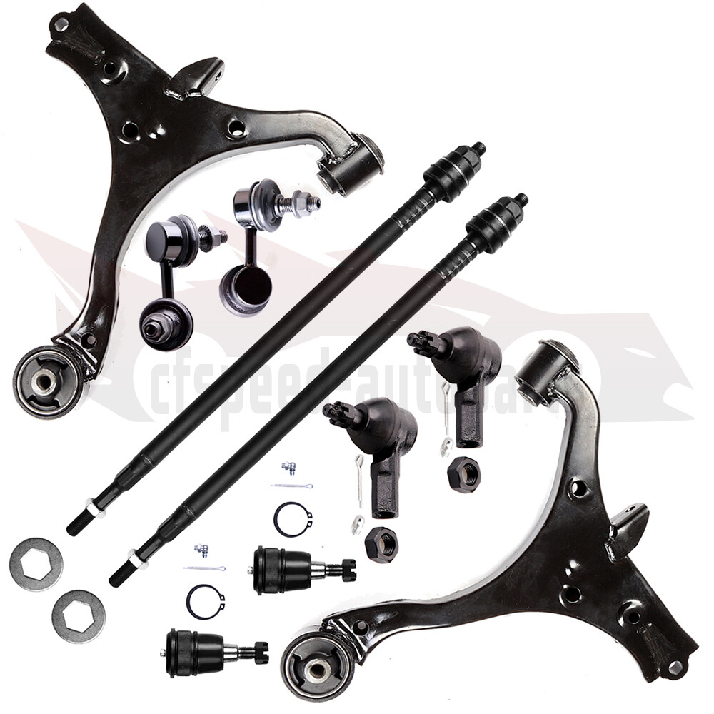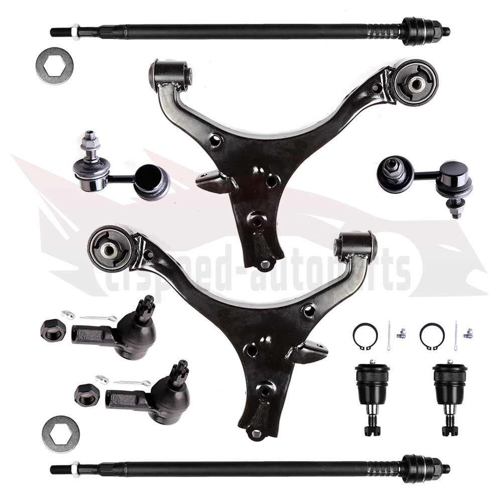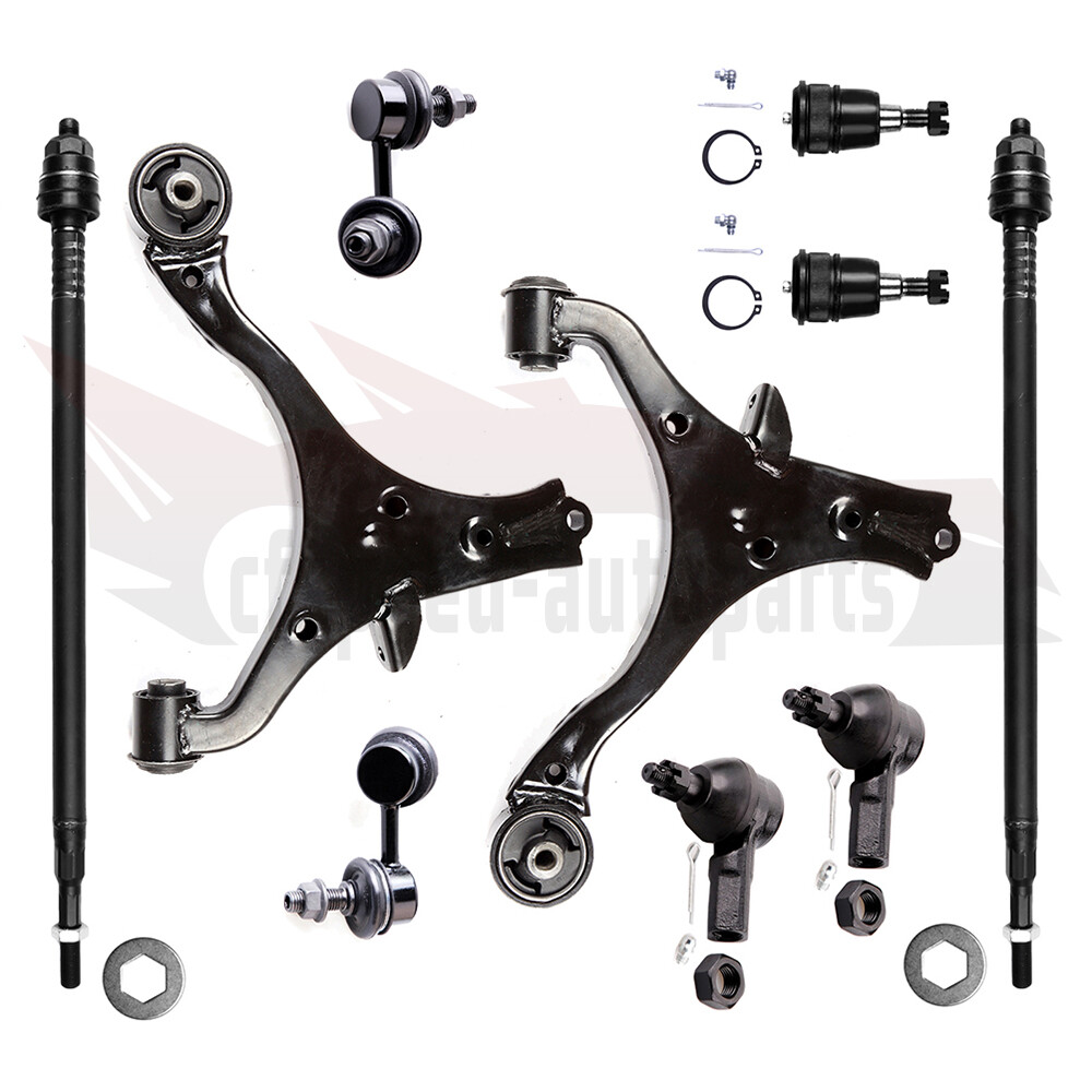 1.Notes (1).Please check the fitment chart above before payment making sure all the suspension parts listed on this page are compatible with your automobile. (2).Please refer to Moog official website before narrowing down your search so as to avoid unnecessary item not as described return requests. (3).Please contact our customer services for targeted discount after all the items are received if you have reached any targeted discount thresholds, the terms of which is at the bottom of this page. 2.Fits These Vehicles 2002 - 2006 HONDA CR-V 3.Package Includes Cfspeed-autoparts 10PCS Control ArmTie Rod End Ball Joint Steering Parts For 2002-2006 Honda CR-V 1.Notes (1).Please check the fitment chart above before payment making sure all the suspension parts listed on this page are compatible with your automobile. (2).Please refer to Moog official website before narrowing down your search so as to avoid unnecessary item not as described return requests. (3).Please contact our customer services for targeted discount after all the items are received if you have reached any targeted discount thresholds, the terms of which is at the bottom of this page. 2. Fits These Vehicles 2002 - 2006 HONDA CR-V 3.Package Includes 1x Part # Front Lower Right (Passenger) Control Arm - K640399 1x Part # Front Lower Left (Driver) Control Arm - K640400 2x Part # Front Lower Ball Joint - K80223 1x Part # Front Stabilizer / Sway Bar End Link (Driver) - K90454 1x Part # Front Stabilizer / Sway Bar End Link (Passenger) - K90455 2x Part # Front Outer Tie Rod End - ES3581 2x Part # Front Inner Tie Rod End - EV80383 Ball Joint Replacement Guideline: If there is a knocking or clunking noise in the area of the front axle when the car is traveling over road bumps, potholes or curbs, then there is usually a defect in a component of the wheel suspension. Picture(A) The side of the front axle from which the (vibration) noise is emanating can already be determined during a test drive. The type of noise also already provides certain indications for maintenance regarding which components might be faulty. Picture(B) 1.Raise the vehicle and remove the front wheels. 2.To loosen the fastening screws and fixing nuts of the compression ball joint more easily, spray them with rust remover and allow to act for a few minutes. Picture(C) 3.Loosen the fastening screws of the broken ball joint on the control arm and remove the nuts. Picture(D) 4.Loosen and remove the fixing nut of the ball joint on the steering knuckle. Tip:If the ball stud rotates, hold the ball stud in place with a hexagon socket. Picture(E) 5.Remove the bad or worn ball joint from the control arm. 6.Loosen the compression ball joint on the steering knuckle using a suitable special tool. Picture(F) 7.Clean the cone connection. Tip:For better sealing and durability of the ball joint sleeve, a little silicone grease can be applied to the contact surface. Picture(G) 8.Insert new compression ball joint in the control arm and steering knuckle and tighten with new fixing nuts. 9.Reinstall front wheels. Lower the vehicle and tighten the wheel studs to the tightening torque specified by the vehicle manufacturer. 10.Measure the chassis and adjust it using the various holes on the compression ball joint if necessary. 11.Finally, carry out a test drive. Sway Bar Stabilizer Link Replacement Guideline: While driving, the following signs may indicate a faulty sway bar stabilizer link: (1).Rattling and thumping noises on rough roads. (2).Imprecise vehicle handling. (3).Stronger inclination of the vehicle during cornering. If the sway bar stabilizer link is found to be defective, it should be replaced as described below. Picture(A) 1.Raise vehicle and remove front wheels. Tip:Always check both stabilizer links and replace them in pairs if necessary. 2.Spray fastening nuts of the stabilizer link with rust remover and let act for a few minutes. Picture(B) 3.Loosen the lower fastening nut of the stabilizer link at the stabilizer and remove. Tip:If the ball stud also starts to turn, hold it with a suitable tool. 4.Press stabilizer link out of torsion bar. Picture(C) 5.Loosen the upper fastening nut of the stabilizer link at the suspension strut and remove it. Tip:If the ball stud also starts to turn, hold it with a suitable tool. Picture(D) 6.Press stabilizer link at suspension strut out of bracket. Picture(E) 7.Insert new stabilizer link at suspension strut. Picture(F) 8.Tighten stabilizer link at suspension strut to the tightening torque specified by the vehicle manufacturer. Tip:Secure the ball stud against twisting with a suitable tool. Picture(G) 9.Insert new stabilizer link at stabilizer. 10.Tighten stabilizer link at stabilizer to the tightening torque specified by the vehicle manufacturer. Tip:Secure the ball stud against twisting with a suitable tool. Picture(H) 11.Remount the front wheels. Lower the vehicle and tighten the wheel studs to the tightening torque specified by the vehicle manufacturer. Tip:Even if replacing the stabilizer link does not directly affect the chassis setting, we recommend checking the axle setting and adjusting if necessary after working on the suspension. 12.Conclude with a test drive. Tie-Rod End Replacement Guideline: If you feel a bump in the steering when driving over road bumps or curbs, this might be due to worn tie rod ends or inner tie rods. Clicking noises during sudden steering movements can also be symptoms of a defective tie rod. In order to determine the exact cause and replace the defective tie rod, the car must be elevated with a vehicle lift in order to be examined more closely. This useful tip applies to the exchange of tie rod ends and inner tie rods, which together form the so-called tie rod. Picture(A) Note: Cleanliness is extremely important when working on the power steering. Incorrect work and contamination can lead to leakage and, in the worst case, to failure of the steering assistance. 1.Lift the vehicle and dismount the front axle 