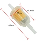 10PCS Motor Inline Gas Oil Fuel Filter Small Engine For 1/4'' 5/16" Line US Pecifications: Material: Plastic + Filter Paper Color: As Pictures Shown Length: Approx.10cm / 3.94 inch Outside Diameter of the Middle Part: 31mm/1.22inch Outside Diameter of the Tube:7mm / 0.28inch(min. part), 8mm / 0.31inch(max. part) Compatibility: Compatible with 1/4" or 5/16" fuel lines Features: 1.Made of quality materials, durable to use. 2.Filter out impurities from gasoline, enhance the performance of the engine. 3.Lightweight and disposable, it is great replacement parts. 4.Can be used on many small tractors, lawn mowers, snowmobiles, garden tillers, go karts, generators, and more with 1/4" or 5/16" fuel lines. 5.They will fit many Deere, Kohler, Birggs, and Stratton engines that use this type of filter. Package Included: 10x Universal Gas Fuel Filters Notes: Please compare the details before purchase. Professional installation is highly recommended. Due to the light and screen setting difference, the item's color may be slight difference. Please allow slight dimension difference due to different manual measurement. Thank you for your kindly understanding.