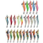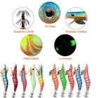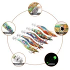 Quantity:10PCS Size: 2.5# 3.0# Model: squid lures Target fish: Octopus cuttlefish and squid fish lures Detail feature: 1. luminous squid jig shrimp prawn lures. 2. Premium material has high strength and strong corrosion resistance, durable to use. 3. Realistic 3D fish eyes and detailed flash fabric surface with bright colors make the squid jig like a real baitfish, luminous tail is especially ideal for deep-sea fishing. 4. Feather wings make the sinking angle more natural, streamlined body and curved chest weight make glow squid jigs sink and swim vividly. 5. Ideal for Catching Fish Like Sleeve-fish, Squid, Octopus and Cuttlefish in saltwater. Bright colors suitable for different conditions, appeal to novice and experienced anglers alike.