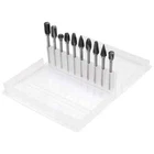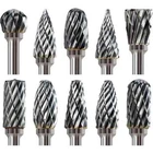 Tungsten Carbide Rotary Burr 10pcs Carving Burr Bits Double Diamond Cut Dremel Tools for Wood Stone Carving Steel Metal Working Product Highlights: 【CARBIDE DIE GRINDER BITS】: These carbide rotary burr set, with 1/8'' shank is made from Tungsten Carbide. Total Length:45-50mm, Cutting Diameter 1/4'', Shank Length 35mm, Shank Diameter 1/8''. 【DOUBLE CUT DESIGN】: The groove lines of these carbide rotary burr's head are crossed, which makes it more suitable for materials with relatively low density, such as wooden, plastic and aluminum. 【ADAPTABILITY】: 1/8” shank fits dremel and most small rotary tools with three jaw chuck for accurate centering. An ideal choice for your DIY woodworking, carving, engraving, and polishing. 【LONG WORKING LIFE】: Packed with plastic storage case for safety storage and protection. The working life of these solid rotary burr is 10 times longer than high-speed steel and 200 times longer than grinding wheel.
