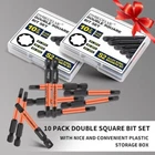 Free eBay listing template designed by dewiso.com 10-Pack 8 Point Star Bit - Professional 8 Point Torx Bit (Magnetic Heads & Hex Shank) - Double Square Bit Set Made of Premium S2 Alloy Steel - 8 Point Star Bit for Trailer - Sizes #1, #2 and #3 FREE AND FAST SHIPPING! About this item 🌟 ADVANTAGES OF DYRECELVE: DYRECELVE offers professional-quality, authentic tools from an internationally recognized brand, trusted by 2 million+ users . Powered by leading technology, our tools provide reliable performance for both professionals and DIY enthusiasts . 🔩 S2 ALLOY STEEL WITH MAGNETIC TIPS: This 8 Point Star Bit is made from premium S2 alloy steel with reinforced magnetic heads , providing excellent grip and easy removal. Featuring industrial-grade hardness (HRC60) , the hardened core increases bit strength, improving torque and durability. 📏 FULL GENERAL SIZE SET: This set includes a 10-pack of double square drill bits in the following sizes: #1 (2 bits) #2 (6 bits) #3 (2 bits) It comes with a convenient bit holder for easy storage and organization. ⚙️ CNC PRECISION ASSEMBLY HEAD: Each 8 point Torx bit is CNC precision-machined for a standard, deep fit into screw slots, making it easy to drive and remove screws. Each bit is clearly labeled with its size for effortless identification. 🔧 WIDELY USED: This blue 8 point star bit set is perfect for a wide range of applications, including: RVs & trailers Electrical engineering projects Deck screws Dirt bikes & chainsaws Auto parts A must-have for both professionals and DIY enthusiasts ! Product We offer a 30-Day Return Policy on items which you are not completely satisfied with. You have the option for a full-refund or an exchange of the item. No returns are available on items shipped outside of the US . Shipping We offer Free Shipping to the US and ship within 2 business days of payment, usually sooner. We use UPS express shipping. That's why your products are usually delivered within 3 days . Contact We try our very best to make sure every customer is completely satisfied. If there's a problem , message us! We're happy to help. 24/7 live chat available.