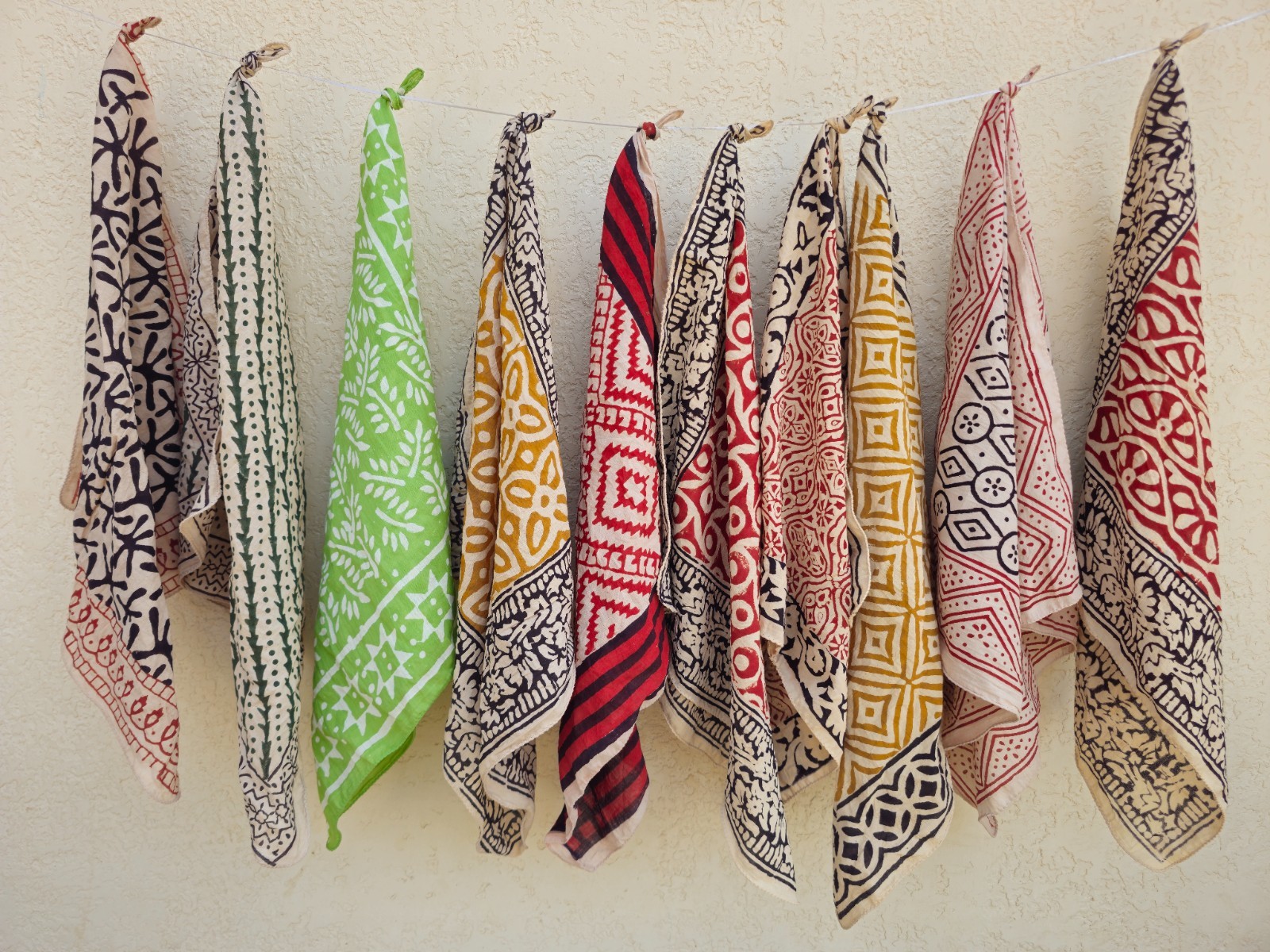 Bandana Scarf Hand Block Print Natural Dye, Handmade,block Print, Natural Colours,Block Print,Organic Colours,Organic Cotton • Made from tightly woven, 100% cotton quilting fabric with a rolled hem. • Block printed with a soft print that's visible on both sides. • Pre-washed and pressed, these bandanas become softer after each trip through the laundry. • Measures approximately 21” x 21” (inches) or 53 x 53 cm. • Made in India. . 100% Cotton Bandanas are not only awesome to wear, they are super handy! This item will be shipped from India. WEAR • In your pocket • On your head • Around your wrist USE AS • Apron • Foraging bag • Napkin cotton bandana, printed handkerchief, bandana headband, dog bandana, unisex bandana, bandanna scarf, soft cotton scarf, ginkgo biloba print, Bandana Scarf White, Cotton Scarf From India, Soft Hombre Bandana, 50x50 Inch Cotton Square Scarf, Necktie Scarf Bandana, cotton bandana, printed handkerchief, Bandana Scarf White, Blockprinted Bandanas Indian Cotton Bandanas , Western Hair Bandana, Block Print Indian Bandana, Block printed Bandanas, Organic Cottobandana, Vintage Boho Bandanna, Bagru Cotton Scarf Square, Cotton Scarves Square, Necktie Scarf Bandana, cotton bandana, printed handkerchief, Bandana Scarf White, Blockprinted Bandanas, Indian Cotton Bandanas, Western Hair Bandana, Block Print Indian Bandana, Block printed Bandanas, Organic Cottobandana, Vintage Boho Bandanna, Bagru Cotton Scarf Square, Cotton Scarves Square, Necktie Scarf Bandana Wood Bandanas for Her Cotton Face Covering Gift Bandanas Gifts for Mum Gifts for Girlfriend Gifts for Sister Gifts for Wife Gifts for Her gifts Bandanas for Her Gift Bandana Scarf Multi Use Bandana Gifts for Girlfriend Gifts for Mum Gifts for Sister Gifts for Wife Gifts for Her gifts
