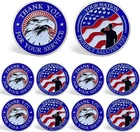 About this item Includes 10 pieces military challenge coins. You can proudly present them to the valiant military personnel around you to thank them for their service, and show your respect Made of high quality of iron plated silver, exquisite workmanship, durable, good enough for using as military gifts Diameter: 1.57"(40mm); Thickness: 0.12"(3mm), each veterans coins comes with a clear plastic protective case The military thank you coins are double-sided designed,the front says, "THANK YOU FOR YOUR SERVICE", the back says, "YOUR NATION PROUDLY SALUTES YOU". You can carry them with you and give them to the Army, United States Navy, Air Force, etc. that are close to you or that you meet to show them your appreciation These military veterans coins are not only suitable as veteran gifts, military retirement gifts, graduation gifts, thank you gifts for your family, friends, colleagues, neighbors on Veterans Day, Graduation, Thanksgiving, etc., but they are also suitable to be added to your collection and displayed on the challenge coin display Packing Each coin will be packed up individually with a plastic case suit in opp bag. Shipping We'll start shipping as soon as possible within 3 business day normally. Tracking will be available after several hours. Feedback We try to make sure ALL customers are satisfied with our services, if you do, a POSITIVE feedback is appreciated, thank you very much. And we always leaving a positive one for customer when item is delivered successfully. Contact Us Feel free to contact us at any time, we're happy to help. You can reach us by eBay or E-mail. Have a nice day!