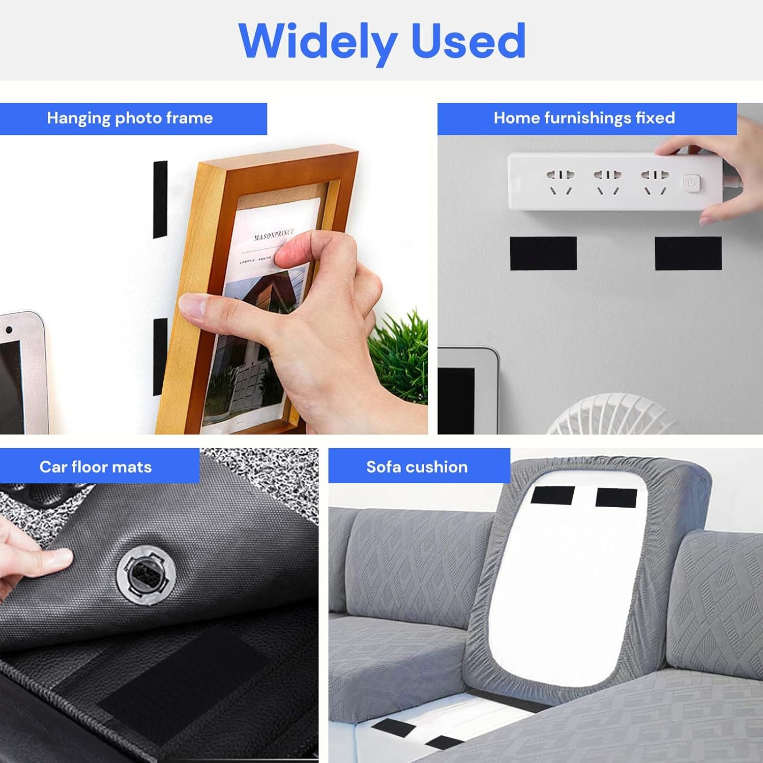【Never Adjust Loose Cushions Again】 Hook and Loop Tape Fasteners Grip Keeps Rugs, Mats & Couch Cushions Firmly in Place—no More Slipping or Sliding, Even With Pets & Kids!Wall Adhesive Strips Heavy Duty,Perfect Helper for Organization Around the House,Classroom,Office,Bathroom, Carpet,Rugs and Crafts,Crafting. 【Stronger Hold, No Residue Mess】 Double-Sided Command Adhesive Strip is Heat Resistance,Sticks Tighter than Standard Tapesvery Strong Self Adhesive,Yet Removes Cleanly—no Sticky Leftovers on Walls or Floors. 【Ditch Screws & Holes—Damage-Free Hanging】 4”x8” Strips (larger than Most!) can be Trimmed for Crafts, Signs, or Securing Car Carpets. Holds Frames, Decor & Organizers Securely Without Drilling. Perfect for Renters & Quick DIY Fixes! 【24-Hour Bond = 90% Strength (Worth the Wait!)】 Press Firmly, Wait a Day, and Enjoy Near-Permanent Hold Without Damage. Use Adhesion Promoter for Tricky Surfaces! 【Cut to Fit ANY Project—Indoors or Out】 Hook and loop is Widely Used in DIY Crafts, Fixing Anti-Slip, Wall Decoration ,Mounting Crafts, Kitchen Organizing, Office Wires and Organizing Cables, Educational Prints and More. Frustrated with Tapes That Always Fail? Meet the Ultimate Reusable Solution! Tired of weak adhesives that lose their grip? Our industrial-strength hook and loop tape delivers unshakable hold with clean removal - finally, a tape that works as hard as you do! Why This Tape Stands Above the Rest: Engineered with high-temperature adhesive , it stays put in steamy bathrooms, hot cars, and sunny windows. Each 4x6" panel holds 15lbs/7kg securely, yet removes cleanly when needed. Endless Organization Possibilities: Secure rugs and mats that normally slide Organize cables without wall damage Hang decorations that stay perfectly placed Mount kitchen tools within easy reach Create temporary displays for photos or art More Than Just Tape - A New Way to Organize: Our customers love using it for: → Vehicle interiors (keep phone mounts in place) → Craft spaces (temporary tool organization) → Home offices (neat cable solutions) → Children's rooms (rotating artwork displays) Experience the Difference Today! Backed by our complete satisfaction promise . If it doesn't outperform other tapes you've tried, we'll make it right for you .