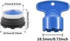10Pcs Faucet Aerator M18.5, Aerator Replacement for Sink Faucet Flow Restrictor, Kitchen Cache Aerators Bathroom Sink Aerator with Key Removal Wrench Tool (18.5 MM) Product Details Brand: QLXHBOT Material: Acrylonitrile Butadiene Styrene (ABS) Finish Type: Polished Thread Size: 18.5 Manufacturer: QLXHBOT 【Water Saving】faucet aerator can fully mix the water and air flowing through to form a foaming effect, improve the scour force, and reduce water consumption. A faucet with an aerator installed saves about 20% more water than a faucet without the aerator. 【Splash-proof, noise-proof, constant-current】 After the water flow is mixed into the air, the aquasource faucet aerator will become softer and reduce the impact force, it can prevent the water from splashing everywhere when the water is out. 【Good Sealing & Easy to Install】The male faucet aerator has a waterproof sealing ring on the outside, which can prevent the water from splashing from the side. At the same time, the package comes with 2 plug-in aerator keys to help screw the aerator, the whole installation process is very convenient. 【3-layer filtration】It is also a kitchen bathroom faucet filter with 3 layer filter built in , which can filter impurities well and ensure water hygiene and safety. And the sink aerator is suitable for kitchen and bathroom. 【Packing List】You will receive 10 M18.5 faucet aerators for kitchen bathroom sink aerators replacement and 2 keys. According to the different water quality in the area, for your water sanitation and safety, it is recommended to replace the aerator directly every 3-8 months.