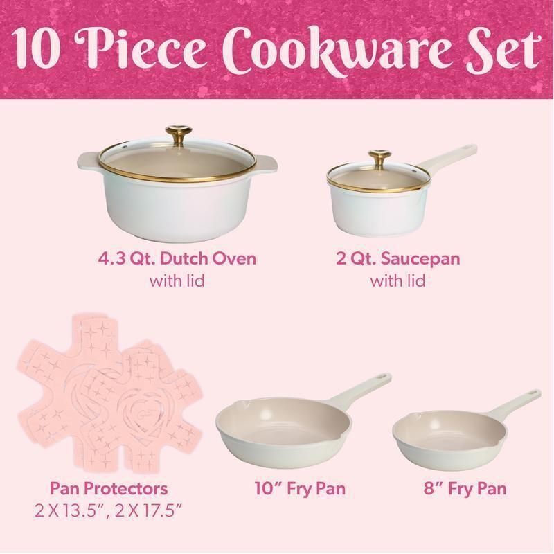 You may also like 12-Piece Pots Pans Cookware Set Nonstick Toxin-Free Ceramic Dishwasher Safe NEW 117.56 USD 123.75 USD Free shipping 5% off 20 Pcs Cookware Set Fry Pan Griddle Cooker Dishwasher Safe Nonstick Easy Care US 118.56 USD 124.8 USD Free shipping 5% off 12-Piece Non-Stick Cookware Set Induction Safe Ergonomic Handles Protectors New 153.14 USD 161.2 USD Free shipping 5% off Nonstick Granite Cookware Set 12PC Aluminum Pots Pans Kitchen Essentials New 116.62 USD 122.76 USD Free shipping 5% off Lightweight 7 Piece Non-Stick Aluminum Cookware Set Green Sage Dishwasher Safe 26.42 USD 27.81 USD Free shipping 5% off 12 Piece Non-Stick Cookware Set Ceramic Fry Pans Stock Pot Induction Safe New 69.87 USD 73.55 USD Free shipping 5% off 24 Piece Nonstick Aluminum Cookware Set Kitchen Essentials Includes Utensils New 153.19 USD 161.25 USD Free shipping 5% off Nonstick Aluminum Cookware Set 22 Pieces Easy Clean Dishwasher Safe Durable New 106.84 USD 112.46 USD Free shipping 5% off 16 Piece Pink Ceramic Non-Stick Cookware Set Healthy Cooking Induction Ready New 82.98 USD 87.35 USD Free shipping 5% off Lightweight 7 Piece Non-Stick Cookware Set Dishwasher Safe Easy Clean Aluminum 26.42 USD 27.81 USD Free shipping 5% off Stainless Steel Durable Stock Pot Lid Tempered Glass Oven Safe Dishwasher Safe 39.93 USD 42.03 USD Free shipping 5% off Stainless Steel Cookware Set 14 Pc Induction Compatible Dishwasher Safe Kitchen 112.75 USD 118.68 USD Free shipping 5% off Turn heads in the kitchen with Paris Hilton's 10-piece Clean Ceramic Nonstick Cookware set—a total must-have for any kitchen! The set includes an 8" fry pan, a 10" fry pan, a 2-quart saucepan with a glass lid, and a 4. 3-qt Dutch oven with a glass lid. Plus, it comes with two 13. 5" and two 17. 5" pan protectors to keep your pots and pans shiny and scratch-free. Oh, and the lids? They feature shiny gold heart knobs for that extra touch of glam. Cook with confidence with the dual-layer Clean Ceramic nonstick coating that's made without PFAS, PFOA, PFOS & PTFE. Say goodbye to sticky situations as food effortlessly slides out of the pan without the need for extra oils. Made with premium cast aluminum construction, this cookware set ensures even heat distribution, guaranteeing cooking results that are so beyond. The soft-touch, stay-cool handles offer a confident grip while you whip up your culinary masterpieces. The convenient pour spouts are great for pouring sauces and soups with ease. And the best part? Clean-up is a breeze! No more scrubbing required because this cookware is dishwasher safe. 10-PIECE CLEAN CERAMIC NONSTICK COOKWARE SET: Includes an 8"" fry pan, a 10"" fry pan, a 2-quart saucepan with a glass lid, a 4. 3-qt Dutch oven with a glass lid, and two 13. 5"" and two 17. 5"" pan protectors to keep your pots and pans shiny and scratch-free. SO CUTE: The tempered glass lids feature shiny gold heart knobs. Loves it! HEALTHY COOKING: The dual layer Clean ceramic nonstick coating is made without PFAS, PFOA, PFOS & PTFE, so you can cook with confidence. THAT'S SMOOTH: The smooth, ceramic non-stick coating allows food to slide right out of the pan without adding extra oils, empowering a healthy choice like a #bossbabe. SLIV AND SIZZLE: The durable premium cast aluminum construction ensures fast and even heat distribution, giving you cooking results that are so beyond. COOK IN STYLE: Soft touch, stay-cool comfort handles offer a confident grip while you fry up culinary masterpieces. SERVE LIKE A PRO: The convenient pour spouts help to pour sauces and soups with ease. DISHWASHER SAFE: No need for scrubbing because this cookware is dishwasher safe. #BeAnIcon: Post your photos with #BeAnIcon for a chance to be shared on Paris' social media! You may also like 14pc Shower Curtain Set W/ Hooks Liner Embossed Dot Design Machine Washable New 26.46 USD 27.85 USD Free shipping 5% off Multipurpose Fabric Refresh Spray Odor Eliminator Sofas Pillows Gym Bags 23.6 oz 8.01 USD 8.43 USD Free shipping 5% off 12ft Propane Hose Regulator Assembly Soft Nose P.O.L Low Pressure Grill Fire Pit 49.1 USD 51.68 USD Free shipping 5% off Indoor Runner Rug Stain Resistant Non Slip Machine Washable High Traffic 20x60 29.17 USD 30.7 USD Free shipping 5% off 15W Wireless Fast Charging Dual Alarm Clock Radio Bluetooth USB LED Display 45.34 USD Free shipping 16x20 Front Loading Wall Picture Frame Photos Posters Art Gallery Decor New 11.29 USD 11.88 USD Free shipping 5% off Candy Bath Fizzers 3.5oz Cotton Candy Scent Natural Fizzing Surprise Handmade US 8.0 USD 8.42 USD Free shipping 5% off Dry Cat Food Adult Cats 7 Plus Chicken Brown Rice 5lb Healthy Nutrition New 24.82 USD 26.13 USD Free shipping 5% off 7 Inch Black Table Torch Lantern Clean Burn Fuel Outdoor Lighting Repellent New 24.42 USD 25.71 USD Free shipping 5% off Cool Mist Ultrasonic Humidifier Medium Rooms 24 Hour Run Time No Filter Required 30.78 USD 32.4 USD Free shipping 5% off Candy Deep Fry Thermometer Analog Adjustable Clip 1.75 Inch Dial 50F to 550F New 25.7 USD 27.05 USD Free shipping 5% off Reusable Cleaning Gloves Heat Protection Moisture Wicking Grip 3 Pairs New 17.42 USD 18.34 USD Free shipping 5% off