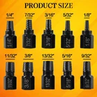 10 Pcs Screw Extractor Set, Hex Head Easy Out Bolt Extractor Set, Multi-Spline 【Screw Extractor Set】This bolt extractor kit is used for removing broken studs/pipes and screws. This stripped screw extractor kit can help you efficiently remove the toughest broken fasteners. 【Alloy Steel Material】This easy out screw extractor set is made of premium alloy steel material, which has high hardness, rust-proof, reliable and durable to use. 【What You Get】The hex bolt extractor package includes 10 pieces of multi-spline screw extractors. And the size is 1/8 | 5/32 | 3/16 | 7/32 | 1/4 | 9/32 | 5/16 | 11/32 | 3/8 | 13/32 inches. 【Left-Handed Helical Design】Our easy out screw extractor set adopts powerful helical grooves and a left-handed helical design for extra holding power and faster threading speeds. Helical grooves insert into itself to increase grip and reduce drag. 【Easy To Use】Each tiny screw extractor is labeled with dimensions for quick selection and easy identification,Whether it's for mechanical maintenance or daily use, it can provide you with convenience. 10 PCS screw extractor set for removing stubborn or broken studs, nuts, bolts, and screws. Parts List: 10×Screw Extractor Highlight description: Product Name: Screw Extractor Kit Material: Alloy Steel Size: 1/8 | 5/32 | 3/16 | 7/32 | 1/4 | 9/32 | 5/16 | 11/32 | 3/8 | 13/32 inches Color: Black Notes: 1.There may be slight differences between the picture and the actual color of the commodity. We will try our best to show you the exact color. 2.Please allow slight dimension difference due to manual measurement. Shipping We offer FREE shipping on all orders! We ship within Three business days of payment, usually sooner. We use a selection of shipping services such as UPS, FedEx, USPS etc. We only ship to the lower 48 states, no APO/FPO addresses or PO Boxes allowed. Local pickups and combined shipping options are not provided at this time. Return You can return a product for up to 30 days from the date you purchased it. Any product you return must be in the same condition you received it and in the original packaging. Please keep the receipt. Payment We accept payment by any of the following methods: PayPal Please pay as soon as possible after winning an auction, as that will allow us to post your item to you sooner! Feedback Customer satisfaction is very important to us. If you have any problem with your order, please contact us and we will do our best to make you satisfied. Contact Us If you have any queries, please contact us via ebay. We usually respond within 24 hours on weekdays. Please visit our eBay store to check out other items for sale! Thank you for shopping at our store.
