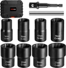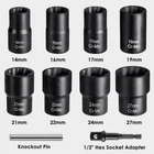 Each bolt extractor is made of high hardness chrome-molybdenum steel with black phosphate process for superior durability and longer life. It will easily extract damaged bolts, nuts, and screws, even if they are stripped, rusted, or frozen. The internal thread with reverse spiral flutes is designed to bite down to provide maximum gripping power, the more you turn, the tighter the socket grips. Standard 1/2-inch drive to and hex adapter for hand tools, air, or power tools. The knockout pin for easier removal. 10 pieces 1/2 inch drive impact bolt & nut remover comes with 27mm, 24mm, 22mm, 21mm, 19mm, 17mm, 16mm, 14mm, hex adapter, and a knockout pin. Heavy-duty blow-molded case lets all the bolt removers stay organized and take your set on the go.