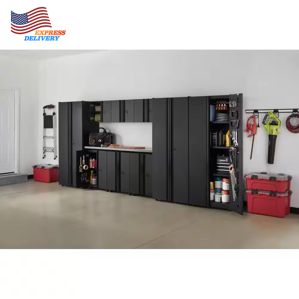 Store New Arrivals Add to Favorite View Feedback Contact 10-Piece Regular Duty Welded Steel Garage Storage System in Black Description Assembly Required Yes Assembly Type Pre-Assembled Color Family Black Color/Finish Black Features Adjustable Shelves,Worktop Grade Standard Duty Included Base Cabinet,Closet Rod,Mounting Hardware,Screws,Shelves,Wall Cabinet Material Steel Number of Pieces 10 Returnable 90-Day Style Modern Worktop Material Stainless Steel Manufacturer Warranty Lifetime Warranty. Lifetime Warranty is for Storage Cabinets only and excludes Stainless Steel Work Surface. Stainless Steel Work Surface has a 1 Year Limited Warranty. This warranty excludes incidental/inconsequential damages and failures due to misuse, abuse or normal wear and tear. This full warranty gives you specific rights, and you may also have other rights, which vary state to state. Assembled Depth (in) 19.6 in Assembled Height (in) 75.0 in Assembled Width (in) 163.5 in Pre-assembled and ready to install for fast, easy organization Black matte powder-coating helps protect against scratches Backed by Husky’s lifetime warranty Store equipment, tools and more with this Husky 10-piece garage storage system. It comes pre-assembled, allowing convenient installation. Three 30-in. lockers, three wall cabinets and three two-door base cabinets give you plenty of space. For easy opening and closing, soft-close hinges for the wall cabinet and base cabinet prevent slamming. Scratch-resistant powder-coated steel construction delivers lasting use. ABOUT US We offer the best prices around on high quality products. Our E-store includes media such as books, movies, music and games while offering electronics, toys, sporting apparel, clothing, tools, general home, garden items and more. SHIPPING We are always working hard to ensure your package arrives as soon as possible. Please understand that some factors like weather, high postal traffic, and the performance of shipping companies are outside of our control. We offer free shipping to the lower 48 states and ship within 2 business days of payment, usually sooner. We do not accept P.O. Boxes. Please provide a physical address. For shipping outside of the continental USA, we only use eBay's Global Shipping Program.The item is shipped to KY and then sent to the rest of the world. International customers are responsible for all duties and taxes. Continue to check out in order to calculate costs for shipping the item to your country. Messages regarding eBay's Global Shipping Program MUST be directed at eBay EXCLUSIVELY. RETURNS We offer a 30-Day Return Policy on items which you are not completely satisfied with. You have the option for a full-refund or an exchange of the item. No returns are available on items shipped outside of the USA. PAYMENT We accept PayPal. CONTACT US This page content is yet to come Please ad us to your favorite seller and visit again later Thank You CUSTOMER SATISFACTION We try our very best to make sure every customer is completely satisfied. If there's a problem, message us! We're happy to help. WE ACCEPT Copyright © 2021 AutoDS. | All Rights Reserved