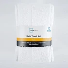 Product details Embrace yourself in the comfort of the Value 10-Piece Towel Set. Made from soft, absorbent 100% cotton, these towels dry quickly . The new design features a popcorn textured border for a fresh look in your bathroom, and double needle stitching for durability. This fade-resistant set includes four bath towels, two hand towels, and 4 washcloths, All age group. and all machine washable. 10-piece set includes 4 bath towels, 2 hand towels, and 4 washcloths New design with a popcorn textured border Stylish cotton bath towels feature double needle stitching for even more durability an everyday must-have for your bathroom. for adults Soft, absorbent, and fade-resistant Made of 100% cotton All age group. Specifications Collection value towel Towel & Washcloth Type Bath Towels Material Cotton Fabric Content 100% Cotton Grams per Square Meter (GSM) 372 gsm Color White and Grey Pattern Solid Print Theme value towel Piece Count 10 Items Included bath towel , hand towel , washcloth Features Quick Dry Assembled Product Weight 3.02 lb Number of Bath Towels 4 Number of Hand Towels 2 Number of Washcloths 4 Shape Rectangle Assembled Product Dimensions (L x W x H) 11.50 x 8.00 x 8.00 Inches Directions Fabric Care Instructions Machine wash warm with like colors, Deep color bleeds, Wash Before Use., Tumble Dry , Do Not Bleach Color Towels Package Includes 4 * bath towels 2 * hand towels 4 * washcloths
