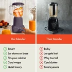 Space-Saving Design: Part of our Fits-anywhere kitchenware system, the bella Flip & Store Smoothie Blender features a unique design where the 6-cup jar flips onto the base, saving up to 50% more space when stored. Perfect for compact kitchens! Powerful Blending: Equipped with a robust 450-watt motor and a durable 4-tip stainless steel blade, this mixer effortlessly crushes ice, fresh or frozen fruits, and more. Create smoothies, soups, and salsas with a smooth, consistent blend every time 10-Speed Control: Customize your blending experience with 10 powerful speed settings, allowing you to blend, puree, liquify, or crush ingredients to perfection. Whether you’re making a protein shake or a frozen drink, the options are endless Easy-Pour Jar: The 6-cup, BPA-free jar is designed with a generous handle and an easy-pour spout, making it simple to serve your creations without spills. The removable measuring cap in the lid allows for precise ingredient additions while blending Effortless Cleanup & Storage: The jar and lid of the portable blender are dishwasher safe for quick cleanup, and the cord tucks away neatly to keep your countertop clutter-free. It’s designed for both convenience and style in your kitchen bella 10 Speed Countertop Blender, Juicer & Smoothie Maker, Fits-anywhere™ Kitchenware, Slim Flip & Store Design, Dishwasher Safe 48oz Capacity Pitcher & Lid, Stainless Steel Blade, 450 Watt, Plum