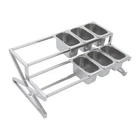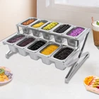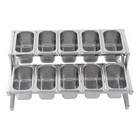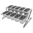 Description This expandable spice rack set allows you to organize your kitchen spices in a unified way, so you can say goodbye to the chaotic arrangement. The product is made of stainless steel with a triangular structural design that is durable and resistant to warping. It features 10 stackable pans and a length-adjustable rack, so you can easily store the product in cabinets when not in use, or accommodate different numbers of pans according to your needs, making your kitchen tidier and your cooking easier. Key Features Build to Last: The 201 stainless steel is rust-resistant, abrasion-resistant, and hard to deform, which makes this product sturdy and durable. 10*spice Box W/ Handle Organizer Shelf,2-tier,201 Stainless Steel Seasoning Rack Description This expandable spice rack set allows you to organize your kitchen spices in a unified way, so you can say goodbye to the chaotic arrangement. The product is made of stainless steel with a triangular structural design that is durable and resistant to warping. It features 10 stackable pans and a length-adjustable rack, so you can easily store the product in cabinets when not in use, or accommodate different numbers of pans according to your needs, making your kitchen tidier and your cooking easier. Key Features Build to Last: The 201 stainless steel is rust-resistant , abrasion-resistant , and hard to deform, which makes this product sturdy and durable. Expandable Design: The retractable length (14-25.6 inches) allows you to adjust it to fit different-sized platforms or let it carry different numbers of pans according to your needs. Strong Structure: The product with a triangle structure, thick materials, and reinforced screws allows it to hold less than 88.18 lbs without deformation or wobbling. User-friendly Design: Each lid comes with a handle and a small opening for the spoon to protect against dust and moisture while allowing you to easily access it with its small spoon to avoid flavor cascading. Excellent Spice Organizer: The 10 1.59 quart pans allow you to store spices, seasonings, dried fruits, dried fruits, or other food items in categories for easy daily access while saving space in your kitchen. Easy to Store: The rack can be retracted to 14 inches and the pans are stackable, so you can easily store them in your cabinets when not in use. Effortless Clean: Individually removable pans and smooth surfaces allow you to easily disassemble them for cleaning with water or a damp cloth. Customer Service: We aim to provide quality products and services. If you have any problems, please feel free to contact us. We will reply and solve the problem for you as soon as possible. Details Non-slip Feet: They provide the product with sturdy support without easily sliding on a smooth surface and protect the table surface from being scratched. Rounded Corners: The corners are smooth and rounded, so you can use them without hurting or scratching your hands. Application The products can be used to store seasonings, spices, sauces, jams, sweet soups, coffee beans, fruits, vegetables, and other food products in homes, commercial kitchens, pantries, cafes, beverage stores, restaurants, cafeterias, food trucks, and catering events. Specifications Color: Silver Style: Modern Material: 201 Stainless Steel Mount Type: Table Standing Assembly Required: Yes Number of Tiers: 2 Food Pan Quantity: 10* 1/9 Pans Load Bearing Capacity: <40kg/88.18lbs Each Pan Capacity: 1.5L/1.59qt Product Size: 35.5-65*35.5*20cm/14-25.6*14*7.9in Packaging Size: 41*31*16cm/16.14*12.2*6.3in Gross Weight: 4.3kg/9.48lbs Net Weight: 4kg/8.82lbs Package Included 1*Stainless Steel Frame 10*Pans 10*Lids 10*Ladles 1*Chinese Installation Instruction Other Needed Accessories Notes Please check the size carefully before ordering. Please allow the slight color difference caused by the shooting light and 1-3cm error due to manual measurement, and make sure you do not mind before you order. Payment Delivery details Terms of sales About us Contact us Payment We accept ebay payment 。 Fees such as import duties, taxes are not included in the item price or shipping costs. These charges are the buyer's responsibility. Delivery details Shipping: 2-9 working days to: USA Terms of sales We maintain high standards of excellence and strive for hundred percent customer satisfaction. Feedback is very important to us. We hope that you contact us immediately before you give neutral or negative feedback, so that we can address your concerns. It is impossible to address issues if we do not know about them! About us Your satis faction is our ultimate goal. We work hard to earn your trust and future business. Our certified technicians have tested each item before shipping. The unit comes with 1 year limited warranty on all manufacturing defects. a) If you receive a defective item, you may return it or ask for a discount. Please contact us within 14 days after you receive the package. b) What you returned must be intact and in its original packaging as re? u. Customer is responsible for shipping costs of the returned item. c) We will cover the cost of shipping back t with the shipping rate indicated in the registration page. We will send you a new unit or refund the full payment you paid. Thank you. Contact us Business Hour Business Hour: Monday To Friday: 8:30 AM to 5:00 PM (Beijing China time) Due to time zones, our reply to your questions may not be immediately. But within above working time, we will reply your email within 24 hours. If it's non-workdays, please kindly be patient and wait till Monday. Please contact us with ebay message. Please feel free to contact us if you have any questions. Monday To Friday: 8:30 AM to 5:00 PM (Beijing China time) Due to time zones, our reply to your questions may not be immediately. But within above working time, we will reply your email within 24 hours. If it's non-workdays, please kindly be patient and wait till Monday. Please contact us with ebay message. Please feel 