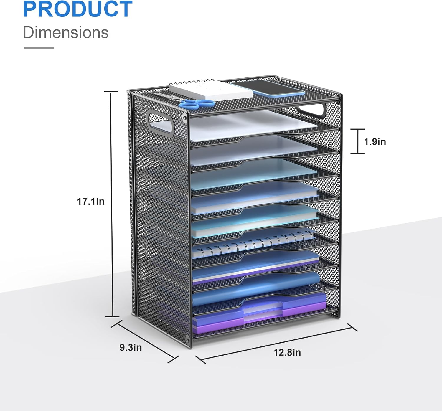 Store New Arrivals Add to Favorite View Feedback OUTWOLF 10 Tier Paper Organizer - Letter Tray Mesh Desk File Organizer with Handles for Office School Desktop Description Item model number OF0033 Style Modern Number of Items 1 Pattern Solid Country of Origin China Is Oven Safe No Batteries required No Brand OUTWOLF Material Metal Finish Type Powder Coated Included Components Screws Is Dishwasher Safe No Item Weight 6.38 pounds Occasion Wedding, Anniversary, Birthday Special Feature Sturdy Color Desk Organizer 10 Tier Shape Rectangular Recommended Uses For Product Letter, Paper, Document Tray Type Letter Tray Finish types Powder Coated Manufacturer OUTWOLF Product Dimensions 12.8"L x 9.3"W x 17.1"H Product Care Instructions Wipe with Dry Cloth [10 Tier Paper Organizer]: Our desk organizer has a large capacity for all your office supplies and desk accessories. The desktop organizer is designed to keep everything you need within reach, allowing you to increase your productivity. [Adjustable Tray Design]: The paper tray allows you to customize your office organization, If you need more space, simply slide out one of the trays to create more room for personal use. You can easily adjust the number of letter tray to fit your needs. [Convenient Handle Design]: This desk file organizer features two portable handles, making it easy for you to move it to any location in your office. Whether you need to bring the file organizer to a meeting or rearrange your workspace, the handles provide convenience and flexibility. [Strong & Easy to Install]: Made of sturdy metal mesh, the paper organizer for desk is built to last. This paper tray organizer can be successfully installed with just a few screws, very easy and fast. [Super Space-saving]: Our office organizer offers a super space-saving solution for your office. Say goodbye to clutter and hello to a tidy and organized workspace, allowing you to focus on what matters most. Product Description 10 Tier Paper Organizer, A Good Companion for Desktop Storage The desk organizer is designed to keep everything you need within reach, allowing you to increase your productivity. Whether you need to bring the desk file organizer to a meeting or rearrange your workspace, its portable handle design provide convenience and flexibility. Sliding Paper Tray The paper tray allows you to customize your office organization, If you need more space, simply slide out one of the trays to create more room for personal use. You can easily adjust the number of letter tray to fit your needs. Large Capacity File Organizer Our deskop organizer has a large capacity for all your office supplies and desk accessories. This paper tray organizer owns handle design, making it easy for you to move it to any location in your office. Simplify Your Desk, Enhance Your Efficiency! Our paper organizer is a good helper for office organization. Provide You a Better Convenient Way Desk Organizer with Handle This desk organizer features two portable handles, making it easy for you to move it to any location in your office. Whether you need to bring the paper organizer to a meeting or rearrange your workspace, the handles provide convenience and flexibility. Office Organization Essentials Made of sturdy metal mesh, the paper organizer for desk is built to last. This desk paper organizer can be successfully installed with just a few screws, very easy and fast. ABOUT US We offer the best prices around on high quality products. Our E-store includes media such as books, movies, music and games while offering electronics, toys, sporting apparel, clothing, tools, general home, garden items and more. SHIPPING We are always working hard to ensure your package arrives as soon as possible. Please understand that some factors like weather, high postal traffic, and the performance of shipping companies are outside of our control. We offer free shipping to the lower 48 states and ship within 2 business days of payment, usually sooner. We do not accept P.O. Boxes. Please provide a physical address. RETURNS We offer a 30-Day Return Policy on items which you are not completely satisfied with. You have the option for a full-refund or an exchange of the item. No returns are available on items shipped outside of the USA. PAYMENT We accept PayPal. CONTACT US This page content is yet to come Please ad us to your favorite seller and visit again later Thank You