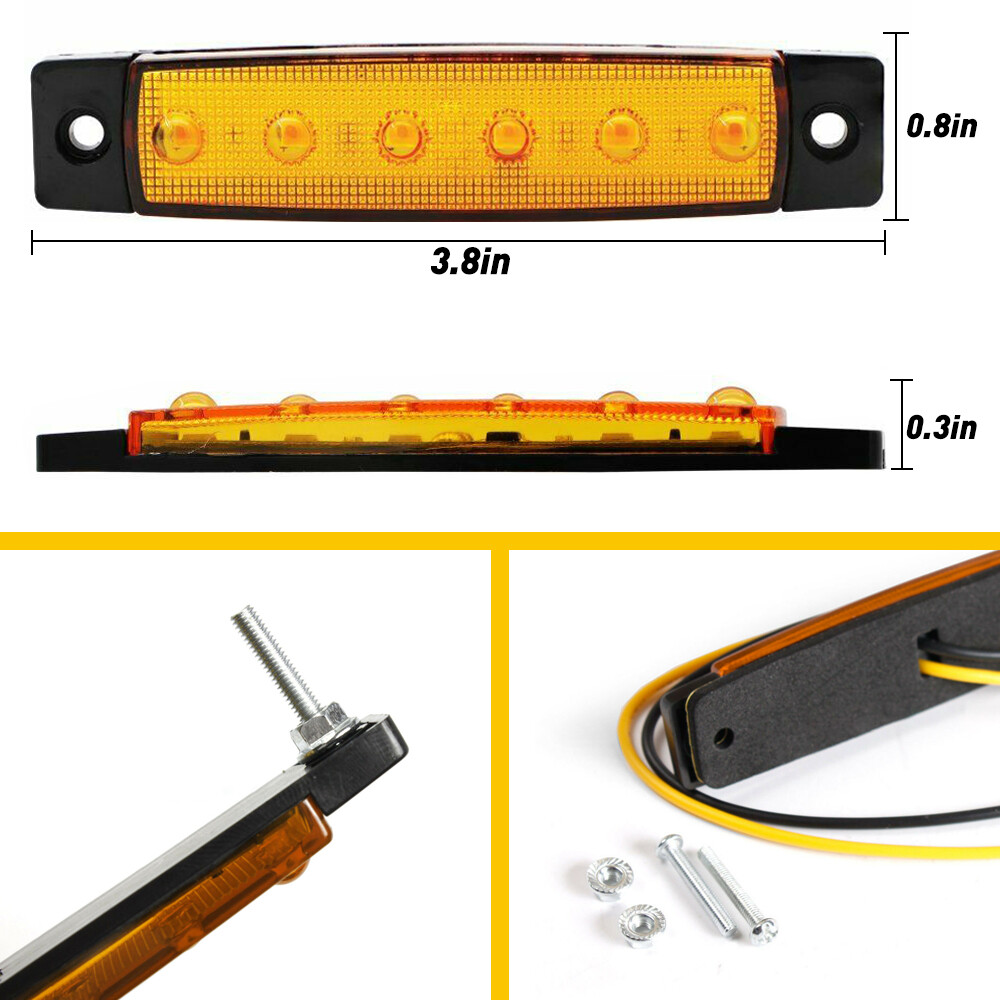 These amber LED side marker lights are incredibly versatile! Perfect for trucks, trailers, or even custom lighting projects. Super bright, energy-efficient, and durable—they work great as emergency lights, rock lights, or even for adding a cool glow to parties and events. Easy to install at 6-12V, and the quality is top-notch. Love the vibrant amber color—really stands out day or night. A must-have for anyone wanting extra visibility or a stylish lighting upgrade!