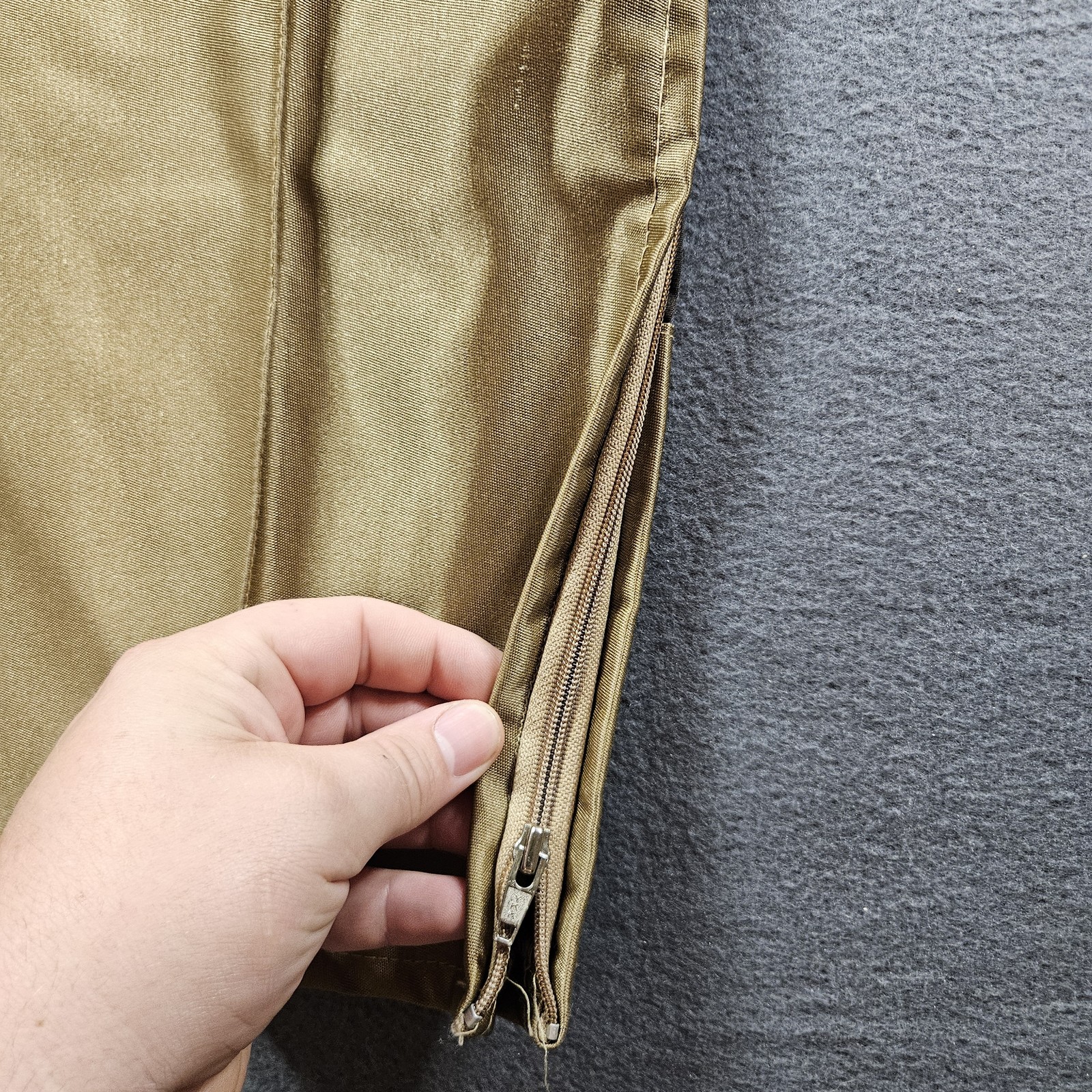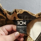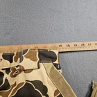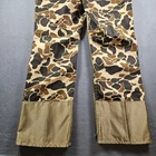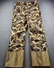 10X Pants Mens 34 Medium Brown Camo Canvas Double Knee Zip Leg Hunting USA Condition: Good pre-owned condition with light wear, minor creasing present Shell: 100% Cotton construction (per inner tag) Brown and tan camo pattern upper with reinforced brown canvas double knees and lower legs Full zip-out leg openings at cuffs for easy on/off over boots Two front slash pockets, two rear patch pockets Button closure with zipper fly Brand: 10X, made in U.S.A. Tag size: 34 Medium Approximate flat measurements shown in images Model code: X55106CB Classic outdoors/hunting pants with durable workwear features, ready for field use No major flaws found