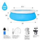 💦Practical & Portable: Our pools for the backyard are easy to assemble, practical, and space-saving, The outlet is designed for easy drainage, you can build a pool in your yard/garden anytime you want to play, clean and sanitation, When you don't need to use it, just drain the pool through the drain and then fold it up for storage, easy to use, so just enjoy your summer days, create an unforgettable and cool memory with your families and friends! 💦Environmental Protection Materials: Our swimming pool adopts a three-layer composite mesh design, made of high-quality environmental protection PVC interlayer, Non-toxic material, anti-aging, anti-ultraviolet and anti-corrosion, safety and durable, harmless, and environmentally friendly. 💦Family-sized pool: 10ft x 30in a swimming pool can hold 5~6 kids, Perfect for staying at home with your family and kids playing in the water to get rid of the summer heat. 💦Easy to Set: Our above-ground pools are easy to set up, just flatten the bottom and then fill the inner circle of the pool with an inflator, easy to operate, super convenient. 💦Note: Do not place the swimming pool in the sand, mud, or any soft or loose soil conditions. Number of people: 5 to 6. Product description: Fast US Shipping! Such a convenient inflatable pool you have worth to have it. Want to enjoy a fun-filled summer at home specially for families with younger children! Fits Anywhere In Your Home: Ideal for deck, backyard, garden or back porch. Name: Round inflatable swimming pool. Color: Blue. Capacity: (90%)3638 L,fits up to 5 to 6 people. Package contains: 10ft * 30in Inflation pool x 1 Air Pump x 1 Filter Pump x 1 Repair Kit x 1 How to use it: 1.Clear the horizontal space in the yard, if possible, put a large cloth/tarpaulin under this pool; 2.Inflate the top of the pool; 3. Pour 2 cm of water to smooth the bottom of the kids pool without wrinkles; 4. Pour water into the pool, smooth out the wrinkles around the pool and finish.