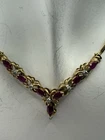 This fancy 10k gold Natural ruby and diamonds has a beauty to show Need a new home to enjoy wearing this fancy necklace Please scroll all pictures for weight and sizes