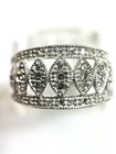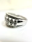 This stunning 10kt white gold ring is adorned with 43 sparkling natural diamonds, totaling .40ct in weight. The round diamonds are bead-set in a beautiful design, perfect for any occasion, whether it be a special event like a wedding or anniversary, or even just to show someone you care on Mother's Day. The ring is a size 7 and has a band width of 10.5. The diamonds in this ring have a J color grade and an included (I2) clarity grade. The main stone is white/near colorless and has a natural creation. This ring is made of 10k white gold, with a metal purity of .400. It is a perfect addition to any fine jewelry collection and is sure to make a statement. Ring weighs 4.2 grams.