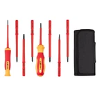 10-in-1 electrician insulated screwdriver set Product C haracteristics Safe To Use: Products through GS certification, insulation blade electrical application, to ensure 500 volts safe working standards. Non-Slip Handle For Comfortable Grip And Durability: The handle is made of abs material, new PP adhesive, good compression resistance, durable. The insulated grip is comfortable to grip and easy to control. The ergonomic design of the handle makes it easy to use. The small handle tip can be rotated so that you can use it with less effort. Chromium Vanadium Steel Cr_V Material Tool Head And Tool Holder: Chromium vanadium steel after heat treatment, high hardness, high wear resistance and good toughness, black polishing blade, magnetic tip, can be more convenient to adsorb screws. Small And Portable: Products carefully designed, easy to carry, separate storage, easy to take, suitable for a variety of use occasions. Product S pecification Status: 100% Brand New Quantity: 2 handles +8 poles Material: Chrome vanadium steel + TPR handle Handle Lenght 1: 4.53" / 115mm Handle Lenght 2: 3.98" / 101mm Bag Size(unfold): 10" x 7.09" / 255mm x 180mm Bag Size(fold): 7.09" x 3.5" x 1.85" / 180mm x 89mm x 47mm Slotted: 3 x 110mm, 5 x 110mm, 6 x 110mm Phillips: PH0 x 80mm, PH1 x 110mm, PH2 x 110mm Torx: T15 x 110mm, T20 x 110mm Package Included 3 x Slotted 3 x Phillips 2 x Torx 2 x Handle Please Note 1. Please allow manual measurement error of 1-3mm. Make sure you don't mind before you buy. 2.There may be some slight differences in the hue of the picture and the actual item due to lighting effects, brightness contrast Settings of the monitor, etc. Make sure you don't mind.