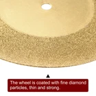 Document 1. The diamond cutting wheel is made of carbon steel, which is more durable than ordinary grinding wheels. The wheel is coated with fine diamond particles, thin and strong.2. Full sand wheel, high cutting efficiency, high durability. The kits are good rotating tool accessories.3. Mandrel handle diameter 3mm, for most small drill and electric grinders. Suitable for most rotary and pneumatic tools.4. Suitable for stone, glass, ceramics, ceramic tiles and other hard materials cutting, sharpening, carving and grinding. 10pcs Diamond Cutting Wheel 25mm Titanium Coating Cut Off Cutting Wheels 1. The diamond cutting wheel is made of carbon steel, which is more durable than ordinary grinding wheels. The wheel is coated with fine diamond particles, thin and strong. 2. Full sand wheel, high cutting efficiency, high durability. The kits are good rotating tool accessories. 3. Mandrel handle diameter 3mm, for most small drill and electric grinders. Suitable for most rotary and pneumatic tools. 4. Suitable for stone, glass, ceramics, ceramic tiles and other hard materials cutting, sharpening, carving and grinding. Hot Item Payment 1.We accept eBay payment . 2.Payment must be received within 7 business days of auction closing. Shipping 1.We ship to your eBay or Paypal address. Please make sure your eBay and Paypal address is correct before you pay. 2.Items will be shipped within 1-3 business day when we received payment. 3.Delivery time depends on destination and other factors. Description Policy 10pcs Diamond Cutting Wheel 25mm Titanium Coating Cut Off Cutting Wheels 1. The diamond cutting wheel is made of carbon steel, which is more durable than ordinary grinding wheels. The wheel is coated with fine diamond particles, thin and strong. 2. Full sand wheel, high cutting efficiency, high durability. The kits are good rotating tool accessories. 3. Mandrel handle diameter 3mm, for most small drill and electric grinders. Suitable for most rotary and pneumatic tools. 4. Suitable for stone, glass, ceramics, ceramic tiles and other hard materials cutting, sharpening, carving and grinding. Hot Item Payment 1.We accept eBay payment . 2.Payment must be received within 7 business days of auction closing. Shipping 1.We ship to your eBay or Paypal address. Please make sure your eBay and Paypal address is correct before you pay. 2.Items will be shipped within 1-3 business day when we received payment. 3.Delivery time depends on destination and other factors.