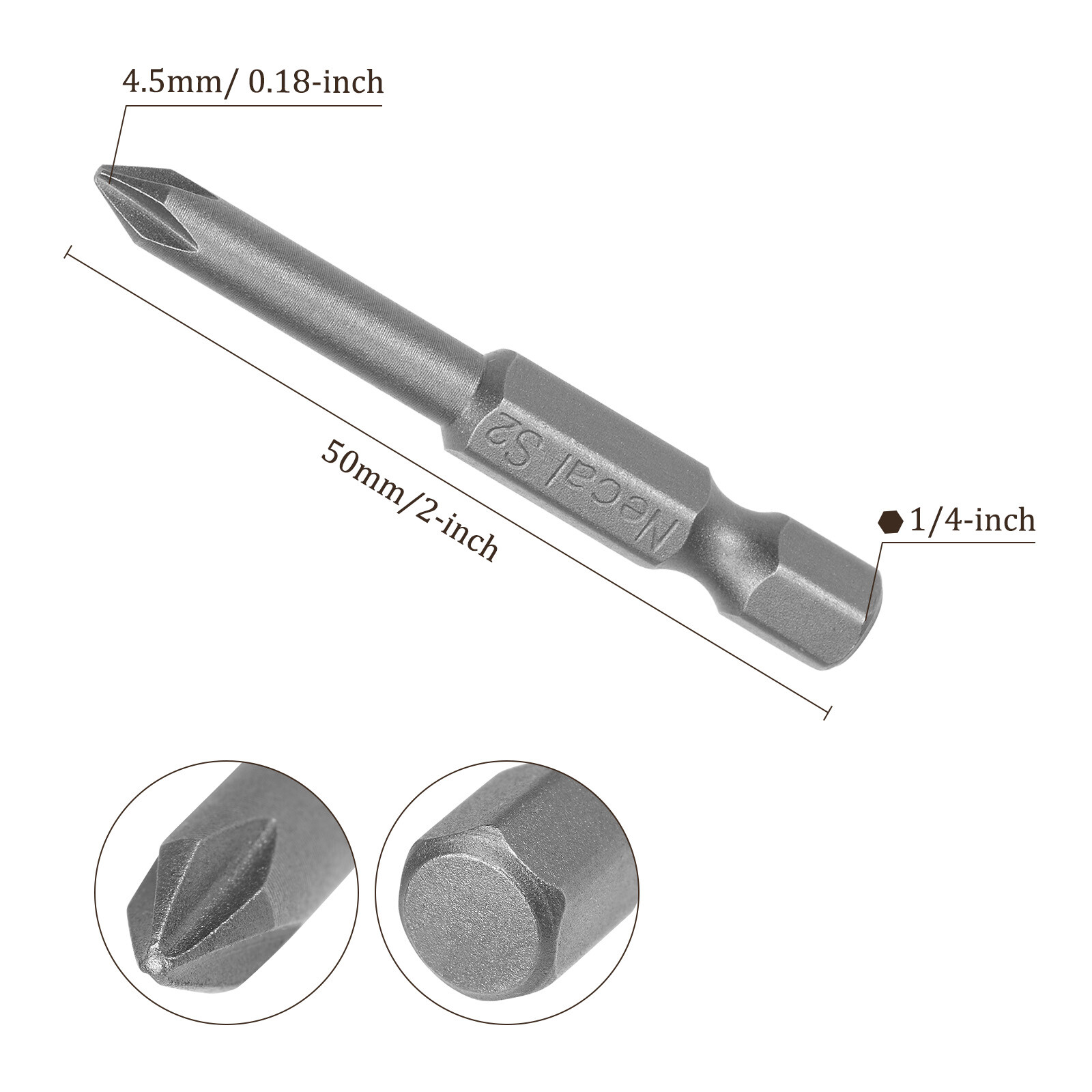 Document APPLICATION- Fit for electric screwdriver, manual screwdriver, power drill and other pneumatic or power tools with 1/4" hex holder. Widely used in cars, trucks, engines, motorcycles, computers, cable boxes and other applications.ABOUT THIS PRODUCT- Made of S2 alloy steel, which is a commonly used material in hardware with high hardness.- Sandblasting surface, corrosion resistance and durability.- Magnetic tip, can suck the screws easily when used it.- Exquisite workmanship, each edge can be accurately locked screws, no damage to the screw, and the screwdriver head.SPECIFICATIONBit Type: PH1Tip Diameter: 4.5mm / 0.18“Shank: 1/4“ Hex ShankLength: 50mm / 2”Material: S2 Alloy SteelFinish: SandblastingPackage: 10 packs of Cross Head Screwdriver BitTAKE NOTICE OF- Do not turn the screws with mismatched size to avoid damage to both the screw and the drill. 10pcs Phillips Screwdriver Bit 2" x H1/4 x 4.5mm x PH1 Magnetic Power APPLICATION - Fit for electric screwdriver, manual screwdriver, power drill and other pneumatic or power tools with 1/4" hex holder. Widely used in cars, trucks, engines, motorcycles, computers, cable boxes and other applications. ABOUT THIS PRODUCT - Made of S2 alloy steel, which is a commonly used material in hardware with high hardness. - Sandblasting surface, corrosion resistance and durability. - Magnetic tip, can suck the screws easily when used it. - Exquisite workmanship, each edge can be accurately locked screws, no damage to the screw, and the screwdriver head. SPECIFICATION Bit Type: PH1 Tip Diameter: 4.5mm / 0.18“ Shank: 1/4“ Hex Shank Length: 50mm / 2” Material: S2 Alloy Steel Finish: Sandblasting Package: 10 packs of Cross Head Screwdriver Bit TAKE NOTICE OF - Do not turn the screws with mismatched size to avoid damage to both the screw and the drill. Hot Item Payment 1.We accept eBay payment . 2.Payment must be received within 7 business days of auction closing. Shipping 1.We ship to your eBay or Paypal address. Please make sure your eBay and Paypal address is correct before you pay. 2.Items will be shipped within 1-3 business day when we received payment. 3.Delivery time depends on destination and other factors. Description Policy 10pcs Phillips Screwdriver Bit 2" x H1/4 x 4.5mm x PH1 Magnetic Power APPLICATION - Fit for electric screwdriver, manual screwdriver, power drill and other pneumatic or power tools with 1/4" hex holder. Widely used in cars, trucks, engines, motorcycles, computers, cable boxes and other applications. ABOUT THIS PRODUCT - Made of S2 alloy steel, which is a commonly used material in hardware with high hardness. - Sandblasting surface, corrosion resistance and durability. - Magnetic tip, can suck the screws easily when used it. - Exquisite workmanship, each edge can be accurately locked screws, no damage to the screw, and the screwdriver head. SPECIFICATION Bit Type: PH1 Tip Diameter: 4.5mm / 0.18“ Shank: 1/4“ Hex Shank Length: 50mm / 2” Material: S2 Alloy Steel Finish: Sandblasting Package: 10 packs of Cross Head Screwdriver Bit TAKE NOTICE OF - Do not turn the screws with mismatched size to avoid damage to both the screw and the drill. Hot Item Payment 1.We accept eBay payment . 2.Payment must be received within 7 business days of auction closing. Shipping 1.We ship to your eBay or Paypal address. Please make sure your eBay and Paypal address is correct before you pay. 2.Items will be shipped within 1-3 business day when we received payment. 3.Delivery time depends on destination and other factors.