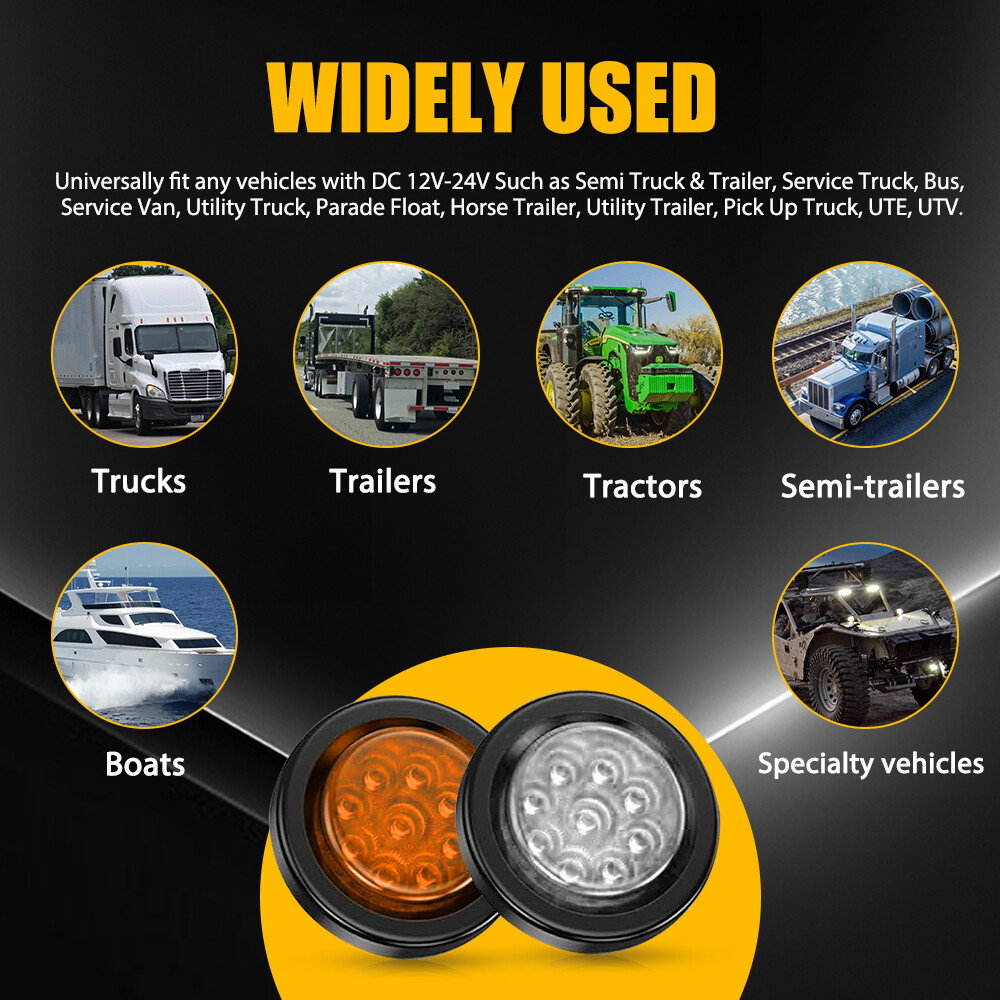 5Pcs 2" Round 9 LED Amber Light Side Marker Lamps W/ Black Grommet For Truck UTV Fit for: Universally fit any vehicles with DC 12V-24V such as Semi Truck & Trailer, Service Truck, Bus, Service Van, Utility Truck, Parade Float, Horse Trailer, Utility Trailer, Pick Up Truck, UTE, UTV. Specifications: Product Material: ABS+PC Suitable Voltage: 12-24V Lens Color: Amber,White Light Color: Amber,White Wiring Connections: White Wire: Negative Black Wire: Positive Connector Type: Pigtail Mounting Type: Flush-Mount Waterproof Rate: IP67 Lifespan: 50,000h+ Features: *High Brightness 10x 2" 9 LED Stop Turn Signals Tail Brake Lights White Yellow For Truck Trailer 5Pcs 2" Round 9 LED Amber Light Side Marker Lamps W/ Black Grommet For Truck UTV Fit for: Universally fit any vehicles with DC 12V-24V such as Semi Truck & Trailer, Service Truck, Bus, Service Van, Utility Truck, Parade Float, Horse Trailer, Utility Trailer, Pick Up Truck, UTE, UTV. Specifications: Product Material: ABS+PC Suitable Voltage: 12-24V Lens Color: Amber,White Light Color: Amber,White Wiring Connections: White Wire: Negative Black Wire: Positive Connector Type: Pigtail Mounting Type: Flush-Mount Waterproof Rate: IP67 Lifespan: 50,000h+ Features: *High Brightness Each LED light bright enough and energy-saving. *Superior Quality Made of high quality material to ensure its low energy consumption, good waterproof and shock resistance. *Waterproof The tail light has IP67 waterproof rate, which works even under extreme conditions such as rain and snow. *Wide Application This LED light can be used in any vehicle with DC 12V-24V, such as a Semi Truck and trailer, Service Truck, Bus, Service Van, Utility Truck, Parade Float, Horse Trailer, Utility Trailer, Pickup Truck, UTE, or UTV. *Warm Notice Please check the detail information of the product carefully before purchasing. Packaging Include: 10 x 2" Round 9 LED Clearance Side Marker Light 10 x 2.8" Round Black Grommet 10 x 2-Pin 90° Plugs Connector Item Specifics Brand AUXITO Lens Color Amber,White Light Color Cold White,amber Payment 1. Instant PayPal payment is the preferred method of payment. We also accept payment via PayPal, DebitCard, Visa, MasterCard, Discover. 2. Before payment,Please keep the consistency of Paypal address and ebay address. 3. Quantity orders are welcome! Shipping 1. All items will be shipped in 24 hours after receiving your payment . 2. We ship this item to US only via USPS first class mail. It usually takes 3-6 working days to deliver. Returns 1. We offer free return & money back guarantee. If you are not satisfied with your purchase for any reasons, you can return the item for refund or replacement/exchange. All returns must include the original packaging. (Please refer to our return policy for details.) 2. If you don't return goods within 60 days from date of purchase, your right to cancel will be revoked. Any items damaged because of incorrect installation will not be refunded. Please contact us for return or troubleshooting help prior to returning any products. Contact Us 1. Negative feedback will not help resolve any problems you have, please contact us via eBay messages before leaving negative feedback, our customer service will make best effort to help you with the issues. 2. We maintain high standards of excellenceand strive for 100% customer satisfaction! Feedback is very important to us. We request that you contact us immediately Before you give us neutral or negative feedback, so that we can satisfactorily address your concerns. FAQ 1. Can you tell me when my order will be shipped? Actually we will ship the item within 1 business day after receiving orders. But USPS need to take longer time to update tracking info and arrange delivery during the challenging time for now. If your order was not shipped more than 3 business days, please contact us with your order number to get quick support. 2. My item has not arrived, what's taking so long? Sometimes items take longer than expected, especially if it's going far or to rural area. Check with your post office to see if your item has been held up. Sometimes USPS will not update a tracking number until it has arrived at its destination. If your item still has not arrived after a few days, let us know so we can double check for you and help solve it asap. 3. Do you ship to Canada, United Kingdom, Australia, etc.? Unfortunately, we could only ship to United States (Domestic shipment) at the moment. 4. I bought the wrong items/ the items were not compatible with my vehicle. Please contact us via ebay message to get quick support. DESCRIPTION PAYMENT SHIPPING RETURN POLICY CONTACT US Hot Item LED 3rd Brake Third Cargo Light Red Lens Lamp For Ford F250 350 1999-2016 USD 31.19 Left+Right Rear Bumper Reflector Light Lamp 2014-2019 For C7 Chevrolet Corvette USD 30.99 Rear Bumper Reflector Light Molding Cover Trim LH RH For 2016-2021 Honda Civic USD 39.99 LED 3rd Brake Light Tail Lamp For Ford 2009 2010 2011 2012 2013 2014 F150 Pickup USD 30.99 Rear Bumper Reflector fog Light Lamp Left For Lexus 2004-2009 RX330 RX400H RX350 USD 24.99 New List Item 5X 2"inch Round LED Truck Trailer Stop Turn Tail Brake Lights Waterproof 9 LED USD 25.64 Headlights Headlamps Fit For 2005-2007 Honda Amber Odyssey Clear Reflector Lens USD 138.69 9" Red/Amber Tail Turn Signal Flowing DRL Brake light Side Marker Lamp 12-24V USD 24.86 41Pcs Pin Ejector Wire Kit Extractor Auto Terminal Removal Connector Puller Tool USD 15.19 2x LED License Plate Tag Lights Lamps 12V For 2000-2006 GMC Yukon XL 1500 2500 USD 15.19 Excellent Delivery 10x 2" 9 LED Stop Turn Signals Tail Brake Lights White Yellow For Truck Trailer 5Pcs 2" Round 9 LED Amber Light Side Marker Lamps W/ Black Grommet For Truck UTV Fit for: Universally fit any vehicles with DC 12V-24V such as Semi Truck & Trailer, Service Truck, Bus, Service Van, Utility Truck, Parade Float, Horse Trailer, Utility Trailer, Pick Up Truck, UTE, UTV. Specifications: Product Material: ABS+PC Suitable Vol