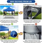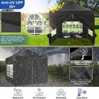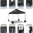 Product Description About this item 【Heavy Duty Upgraded Frame】The frame of 10x10 Pop Up Canopy Tent is commercial grade full truss construction made of durable powder coated stainless steel. 32mm/1.26 inch widened pipe diameter, 0.7mm/0.03 inch thickened wall thickness, Stronger and more stable than other normal gazebos on the market. The middle support pole structure can hold up to 220 lbs on a single pole and can withstand up to level 4 wind (18mph), using the included sandbags, ropes and nails for increased carport stability. 【Best Quality Fabric and Sidewalls】10x10 Heavy duty canopy tent is made of 500D Oxford cloth with two layers of PU coating, UPF 50+, blocks 99% of UV rays. Heat-sealed seam technology is used, 100% waterproof, 1500mm waterproof pressure, waterproof effect is better than other general tents. 4 PU coated sidewalls connected by a whole strip of hook and loop fastener and zipper to attach to the frame top and legs for securing, removable, you can install as many sidewalls as you want. 【Easy Set up, 3 Adjustable Heights】2-3 people can easily set up and take down 10x10 outdoor party tent canopy in minutes without tools, it can easily accommodate 10-15 people. Just remove the fully assembled frame and top from bag, place fabric over frame, stretch legs, and you're done. Wedding tent gazebo is available in 3 different heights (84.3'', 87.8'', 91.3'') for your choice to ensure adequate headspace. Best thumb latch system is easy to lock and release without pinching your fingers. 【Portable Durable Roller Bag】Since 10x10 heavy duty pop up canopy tent with sidewalls has a weight of 62 lbs, we offer you a solid and durable 600D Oxford cloth PVC coated roller bag. It has 2 big removable solid rubber wheels and reinforced handle for easy movement and transportation. Tents for parties, weddings, BBQ, trade shows, sporting event, disaster relief or any outdoor event. Waterproof canopy gazebo are commonly used in commercial areas, playgrounds, patios, gardens, farms, gyms, etc. 【WHAT'S INCLUDED】1x Commercial grade 10x10 Pop up Tent Frame, 1x 10'x10' Canopy Top Cover, 4x PU Coated Panels (3x Sidewalls with Window and 1x Sidewalls with Zipper), 4x 420D Oxford cloth PVC coated Sandbags, 8x Ground Pegs, 4x Wind Ropes, 1x Roller bag, 1x Manual. If you have any questions and doubts, please feel free to contact us, we will give you the best help. Choosing us means choosing a comfortable life.