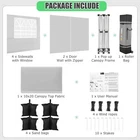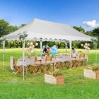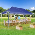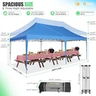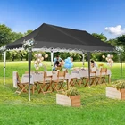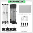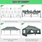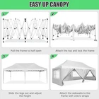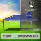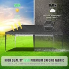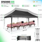 Product Description 10x20 POP UP CANOPY Tents Advantage The Hoteel 10x20 pop up canopy comes with a wheeled bag for easy transportation and portability. It features an upgraded height, with the top reaching up to 122.83 inches. The frame is made of durable powder-coated steel, with rust-proofing and thickened alloy steel frame structure for an upgraded aesthetic, robustness, durability, rust resistance, and corrosion resistance. The sturdy metal clamps reinforce the frame's telescoping connection points, providing stability and wind resistance. Frame The Hoteel 10x20 pop up canopy, enhanced for durability and stability, benefits from its 30x30 mm reinforced aluminum legs. Fabric 420D Oxford fabric with PU silver coating and waterproof strip, offering waterproof and UV Sidewall 6 210DPA coated side cloths (4 with windows,2 with zippers). Packaging includes 10x20ft pop up canopy Frame, one 800D Oxford fabric wheeled bag with PVC coating (detachable wheels), 4 sandbag,6 210DPA coated side cloths (4 with windows,2 with zippers),10 stakes, 4 ropes, Instruction Manual NOTE 1 When in use, secure your canopy using the provided stakes, wind ropes, and sandbags to ensure the stability of the tent. NOTE 2 Not suitable for heavy rain or strong winds and Before purchasing, it's advisable to ensure the length of the canopy is suitable for your car's trunk--Box length is 46.85in. Installation Size 10x20x10.23ft Package Size 46.85"L x 11.02"W x 15.35"H Height Adjustable 9.58/9.91/10.23ft Color White/Black/Blue/Khaki/Grey Net Weight 75.84LB HOTEEL 10x20 Pop Up Canopy Display HOTEEL 10x20 Pop Up Canopy Detail Display