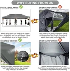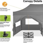 Product Description COBIZI 10x20 Heavy Duty Pop Up Canopy Tent with 6 Sidewalls Pop up party tents heavy duty can bear the weight of 7-8 people at the same time. Package Contents 1 x Pop Up Canopy Frame 1 x Canopy Tent Top Cover 1 x Wheeled Storage Bag 2 x Sidewall with Zipper 4 x Sidewall with Window 4 x Sandbag 6 x Ropes 12 x Ground Nails 100% Waterproof and UPF 50 +, Blocks 99% UV Sun Rays. Excellent load-bearing capacity, the frame can bear the weight of 7-8 people at the same time. 10x20 Heavy Duty Pop Up Canopy Tent have excellent waterproof, windproof, sun protection! Dimensions: 10 x 20 FT Adjustable Leg Height: 86.6/90.5/94.5 inch Adjustable Center Height: 122.0/126.0/129.9 inch Product Weight: 45kg / 99lbs Single Pole Max Load: 100KG Outer Leg Size: 32x32x0.7mm Inner Leg Size: 25x25x0.6mm Truss Bar Size: 13x25x0.6mm Frame Material: Alloy Steel Cloth Material: 500D PU Oxford Cloth(Water Pressure Resistance 1500mm) Frame Structure: Central Full Truss Structure Wind Resistance Level: Four Winds(<8m/s Wind Speed) Details of 10x20 Outdoor Wedding Tents for Parties Comparison of our 10x20 Pop Up Party Tent Canopy with others 10x20 canopy tent is suitable for many scenes!