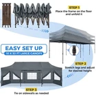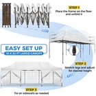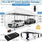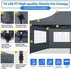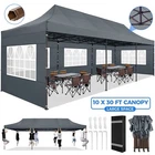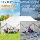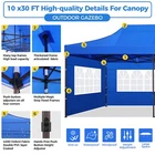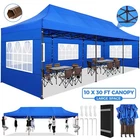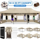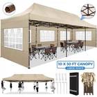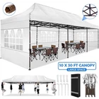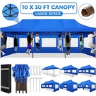 Description 10x30 Commercial Pop Up Canopy Tent Outdoor Party Canopy About this item πγ Upgrade Heavy Duty Hexagon Shaped Frame γ10x30 Party Tent is made of commercial-grade full truss construction and coated upgrade Hexagon Shaped legs, more stable than square pipe, durable and rustproof. 1.77'' diameter is and 0.03'' thickness, stronger than the most 10x30 pop up canopy on the market. Peak tensioner structure holds up to 220 lbs on a single pole and can withstand up to level 5 wind/28-38 mph. Ropes and stakes to increase the stability of the outdoor canopy. πγ All Season Tarp, Detachable Sidewalls γ10x30 canopy tent with walls is made of PU coated 420D Oxford Fabric with waterproof strips for 1500mm water pressure,UPF 50+, blocks 99% of the sun's rays, 100% waterproof. 8 PA coated removable sidewalls are connected by a whole strip of Velcro to the frame at top. You can install as many sidewalls as you need. πγ Quick to Set up, 3 Heights Available γ10x30 Pop up tent can be quickly set up and taken down in minutes by 3-4 people, no tools required, and can easily accommodate 25-35 people. Simply remove the pre-assembled frame from the bag, place the fabric on top, stretch the legs to finish. Adjust 3 different heights (118 inches, 122 inches, 126 inches) with the upgraded thumb button. Upgraded thumb latch system is easy to lock and release to prevent pinched fingers. πγ Multiple Use Scenarios γ This party tents 10x30 heavy duty offer you a carry bag for easy transport.10x30 heavy duty pop up canopy for parties, weddings, barbecues, trade shows, sporting events, disaster relief or other outdoor events. Canopy top front valance with 4 name banner sleeve to customize and personalize your shelter. Help you attract customers. πγ The Package Includes γ1x 10'x30' Commercial grade Pop up canopy frame, 1x 10'x30' Canopy Top, 8x PA coated Panels (5x SideWalls with Window and 3x SideWalls with Zipper), Tent bag, 4x Ground Pegs, 4x Wind Ropes, 1x Manual. If you have any problems and questions, please feel free to contact us. Material: Polyurethane (PU), Polyester Color: White/Khaki/Gray/Blue/Black Recommended Uses For Product: Outdoor Activities Product Dimensions: 351"L x 120"W x 126"H Features: Special Designed Premium Grade Frame: Special thicken full steel structure, commercial grade 1.77'' (45 mm) hexagon shaped legs with hammertone powder coated finishing. Strong, Commercial and Rust Resistance. Highlight: Special designed peak tensioner design, lift the top higher to ensure the top tight and firm. Will not collected water in rainy days. Beautiful and Safety. Waterproof, UV Protection, Windproof] Sliver coated 420D PU polyester, block 99.99% UV rays. Stitching lines are all seam sealed to prevent water penetrate from seams. 100% Waterproof. Velcro straps on each valance to keep the canopy stick on the frame. Easy to Set Up: No tools required, could be set up by 1 or 2 people. The latest technology, makes set-up and close real safe, comfortable and reliable. Package Content: 1 x Patio Canopy Note: Due to the difference between different monitors, the picture may not reflect the actual color of the item. Frame Pre-assembled Commercial-grade full truss construction and coated upgrade Hexagon Shaped legs, thickened 1.77'' diameter is and 0.03'' thickness pipes, durable and rustproof. Fabric 420D Oxford Fabric with waterproof strips and two layers of PU coating, UPF 50+, blocks 99% of the sun's rays, 100% waterproof. Packing List 1X Commercial Grade Canopy Frame + 1X Canopy top+1X Carry Bag+4X Ropes + 4X Stakes + 8X Removable Sidewalls+1X Manual Side Walls 8 removable side walls (5 pcs with transparent windows, 3 pcs with zipper doors ), PA coated, windproof and bright. Application Tents for parties, weddings, barbecues, trade shows, sports events, disaster relief, or any outdoor activities, carport, storage shed. Height Adjustable 118'',122", 126" Carry Bag Heavy duty tent bag Canopy Size 10 x 30 x 10.5 FT Package Size 62.2''x26.7''x11'' Net Weight 67KG/147.7LBS Payment 1 . We accept PayPal only. 2 . Payment should be completed within 4 (Four) days of auction closing. Or unpaid dispute will be filed for closing auction. 3 . Sales Tax of 9% will be applied for orders shipped within the state of California 4 . We will leave a positive feedback immediately after payment is received. We appreciate a positive feedback as much as you do. If for some reason there is any issue with the purchase, please contact us prior to leaving feedback, and we will be glad to work with you to have it resolved. Shipping 1 . We Ship to United States ONLY. 2 . Ship from two warehouses and only to eBay ADDRESS. Package handling only takes 1 business day at our warehouse, so please make sure entering correct payment and shipping information before checking out. Once your payment is completed, pls leave ebay note if the changes are needed before we send the product. 3 . Truck company: 3-8 business days. | USPS: 2-6 business days. | UPS/FEDEX: 3-5 business days. 4 . Lccal pick up is available. Warranty and Guarantee 1 . All of our items come with a 30-day return policy. We ensure all our items are new and in excellent condition prior to shipping. In the event that you receive the item that is not to the standards above, please contact us via e-Bay messages. All returns must be in new original condition as received and should be shipped with delivery confirmation 2 . We ONLY accept the return for original package. Please make sure that item has NO man-made sabotage. Used items will not be accepted for return. 3 . We reserve the right to refuse any returns for objective reasons. 4 . All NON-seller mistake returns for refund are subject to 20% re-stocking fee and buyer should pay for the round-trip shipping fee. (E.g. you bought wrong model or wrong color). Feadback 1 .Any problem after receiving our goods,please contact us before leaving Neutral/Negative feedback.We promise to help you solve it asap,and make you 