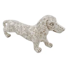 This dachshund figurines measures 5.5'' (H) x 11'' (L) x 3'' (W), so it doesn’t take up that much room. Delightful artistic dachshund statue is beautifully crafted in resin with charming details of leaves and sun carving. A must have for dachshund collector and would be a centerpiece on table, shelf, office desk, etc. The wiener dog figurines would be a wonderful Christmas present, birthday gift for doxie lovers or dog loving friends. The sausage dog statues are heavy but small enough for a paperweight to hold down paper items in home or office.