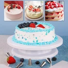 Revolving Cake Turntable: 11 Inch white cake turntable turns smoothly in clockwise or anticlockwise direction, allow you easily creating borders when decorate cake Flexible Icing Spatula: These stainless steel frosting spatulas make it easy to even out frosting and work on layered cakes. With a 10.4 inch angled spatula and a 10.6 inch straight spatula, you can create even crumb layers and perfect surfaces Cake Scrapers: This cake decorating set includes 3 different icing comb scrapers, so you can make designs on your cake. With 1 rounded scraper, 1 straight scraper and 1 toothed scraper, you can easily create complex and stunning designs Piping Bags and Tips Set: With 24 professional numbered icing piping tips and 1 reusable piping bag, you can create designs, from simple dots and lines to intricate flowers and leaves. The included coupler simplifies tip changes without the mess and the pattern chart makes usage straightforward
