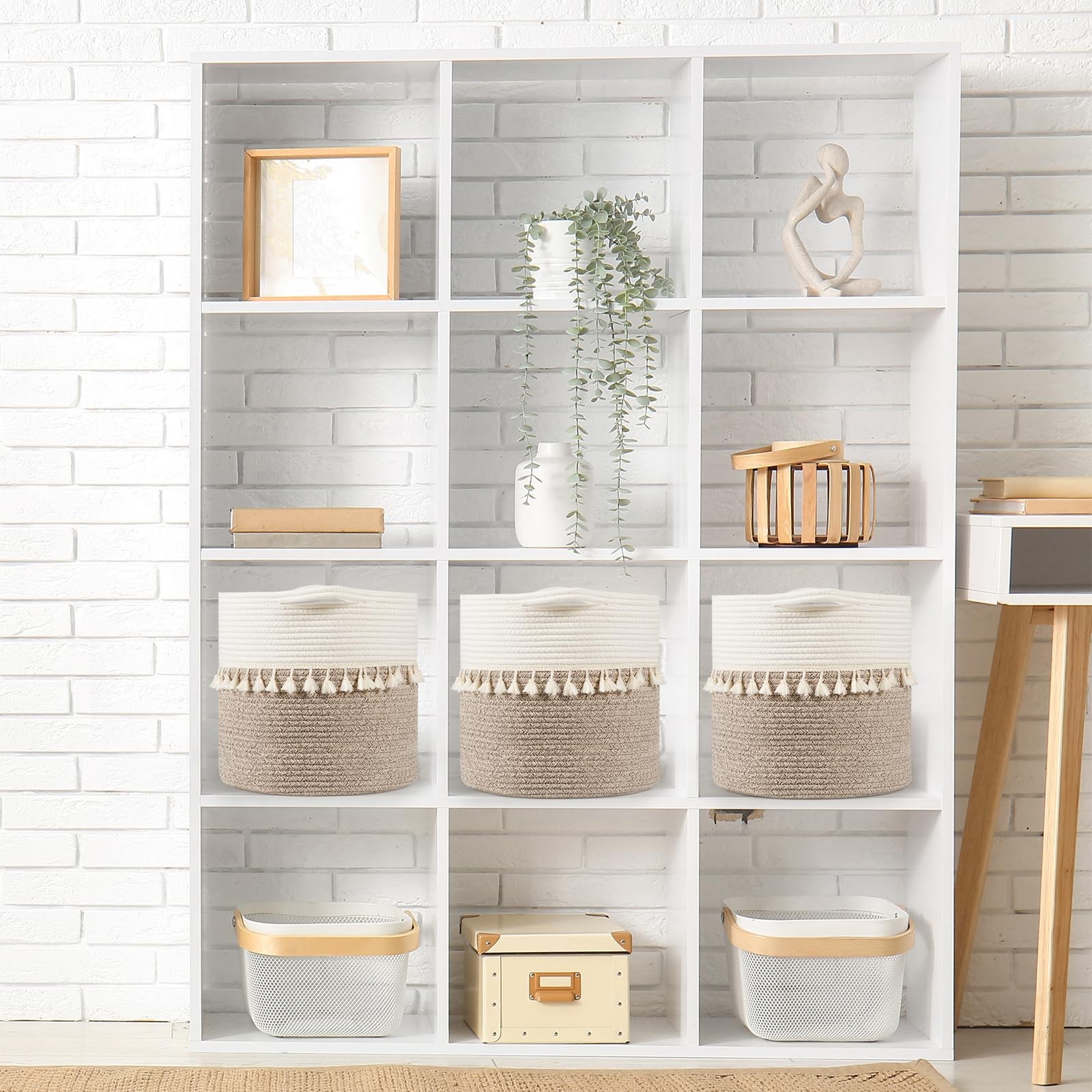 These stylish and practical small basket are perfect for organizing and storing items in your home. The high-quality cotton rope used to create this woven basket is durable and long-lasting, ensuring that it can withstand daily use. The sturdy handles ensure that you can easily carry the storage bins from room to room. Sturdy and Stylish: Our trendy boho tassels with cotton rope woven baskets for storage are a unique addition to your home decor. Stand out from the competition, the sleek round shape and well-crafted handles make it a must-have statement piece in any space. Available in 7 colors, you can easily find a basket organizer that complements the existing color scheme of your living room, bedroom, bathroom, baby room. High-quality Material: Our storage baskets are made from 100% pure cotton, ensuring a soft and durable construction that will last for years to come. The natural material is also environmentally friendly and safe for storing a variety of items. Versatile for Various Needs: The 3-pack can be used flexibly, whether it is in the bedroom to organize underwear and socks, the living room to organize the remote control magazines, or in the bathroom to store toiletries, it can be easy to do, so as to keep the home space neat and orderly. Note on Dimensions: Our Basket size 11"x11"x11"(manual measurement has ±0.2 inches error, which is normal range). Please check the size information carefully and measure the space you are using before purchasing. Easy Shaping: By filling decorative storage baskets for shelves with a suitable amount of stuffing material, such as clothing or towels, it can be reshaped to its original form. Alternatively, the storage bins can be reshaped using a steam iron.