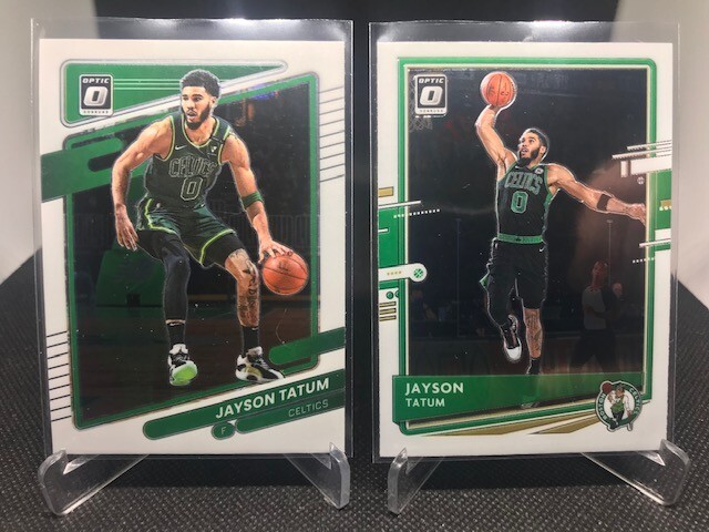This card lot features 11 Jayson Tatum cards from various manufacturers, including Donruss and Optic Prizm. The cards are in mint condition and come with an opened Collectors Tin featuring the Jayson Tatum. These cards are a must-have for any basketball fan, especially those who follow the National Basketball Association (NBA) and love collecting sports trading cards. The lot is perfect for fans of the Boston Celtics and those who want to add to their collection.