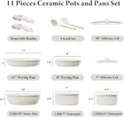 Healthy Ceramic Coating: Made of natural ceramic, our kitchen cookware set is Teflon-free and guarantees no PFAS, PTFE, PFOA,PFOS, lead, or cadmium.Stain-resistant and durable for long-lasting use; Ideal choice for safety-conscious families, especially those with babies Effortless Storage: Save 75% kitchen space by neatly stacking pots and pans in cabinets or drawers; perfect for compact spaces, RVs and campers Innovative Detachable Handles: Transform pots with a "CLICK" into baking dishes, serving plates, or fridge storage, enhancing versatility Ultra Non-Stick Performance: Experience 5X superior non-stick cooking with minimal oil - food just slides off smoothly.No toxic fumes emitted, even when overheated Easy Cleaning: While our cookware is dishwasher-safe for your convenience, we highly recommend handwashing. A simple rinse or quick wipe effortlessly removes any residue, ensuring your cookware remains spotless and maintains its pristine condition with ease Universal Cooktop Compatibility: Enlarged, thickened magnetic base ensures compatibility with all stovetops, including induction and oven; Crafted from recyclable aluminum ensures lightweight yet sturdy, and promotes rapid and even heating 11-Piece Set Includes: 1.3QT(6.3") & 1.8QT(7") saucepans, 8-inch & 11-inch frying pans, 3.2QT(10")sauté pan, 2 removable handles, 7-inch & 10-inch glass lid,silicone slotted turner & ladle Product Description Why Choose Bazova Detachable Handle Pots and Pans Set? Seamless mobility with a click – the removable handles provide flexibility, effortlessly transitioning cookware from stoves to the oven, grill, fridge, and finally to the dinner table. Explore the convenience now. A Versatile Set of Pots and Pans Servers as a frying pan, a dinner plate From Stove, To The Table Unlock the boundless potential of the cookware with its detachable handle – perfect for cooking on any stovetop or serving as elegant dinnerware on the table. Servers as an oven plate Remove Handle, To The Oven Just one click, remove the handle for oven use. Let's make delicious stews! Servers as RV cookware To the Outdoors Stackable and space-saving, our cookware is perfect for RV trips or camping. Enjoy the convenience and ease of bringing our versatile pots along on your journey. Optimal Storage Save 75% Space - Our cookware set is designed for perfect stacking in kitchen drawers, cabinets, cupboards,RVs, travel trailers and motorhomes. Important Tip- We suggest to detach the handle during cooking when you don't need it for fixing. This could greatly extend the lifespan of the handle. Cooking with Ceramic Nonstick Cookware Healthy and Safe Safety First - Our cookware features natural ceramic nonstick,setting it apart from Teflon - free from harmful chemicals and heavy metals such as PFAS,PTFE,PFOA,lead, and cadmium.Prioritize your health with a toxic-free cooking experience. Built for Last -Stain & scratch-resistant,keeps great nonstick performance even after years of use. With Bazova Ceramic Non-stick Ultra Smooth & Nonstick Easy Cooking Smooth interior makes it exceptionally nonstick - perfect for everyday cooking like pancakes, eggs, steaks, and fish. Clean with 5 Sec. Easy Cleaning Rinse or wipe clean - zero residue in 5 seconds. Alternatively, toss it in the dishwasher for time-saving convenience. Heat Transfer Even& Rapid Feature an enlarged and thickened bottom for rapid and even heating. All Stoves Compatible The magnetic conductive bottom ensures compatibility with all stovetops, including induction. 1 What's Included 2 Use & Care