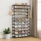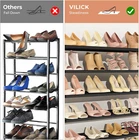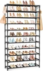 【Large Capacity 11 Tier Shoe Rack】The 11 tier shoe organizer can store up to 55 pairs of adult shoes, and you can remove one layer to fit long boots. This shoe rack organizer is not only suitable for shoes, but also for bags, toys, towels, sundries, books, plants and small accessories. Shoe storage with 10 hooks, you can hang keys, umbrellas, bags, etc., very practical design. 【Sturdy Material & Compact Structure】The tall wide shoe rack is made of durable waterproof non-woven fabric layers, reinforced plastic connectors and thickened iron pipes, good stability and prevents rust, The shoe rack for closet can hold larger and heavier shoes or objects. The shoe shelves has the characteristics of firmness, stability, and long life. 【High-quality Entrance Shoe Rack】Dimensions of shoe storage: 34"L x 10"W x68"H, simple and elegant appearance. The 55 pairs shoe racks can help you better save space and neatly store a large number of shoes. It is very suitable for people who like to buy shoes, have many children, and have a big family. It is not only suitable for placing shoes, but also for placing books and sundries. Stackable shoe rack is perfect for closets, entryways, dorm rooms, apartments, hallways. 【Easy to Assemble】Use the included small wooden hammer to tap the joints to make the wide shoe rack 55 pair tighter and stronger, which brings you great convenience, easy assembly by one person. Hold the shoes of all family members and keep them organized, you can also split into 1*6 and 1*5 tier shoe racks 2 units. 【Worry-Free Service】Any quality problems and problems with our VILICK 11 tier shoe rack for entryway after purchase, please contact after-sales service. Product Description VILICK 11 tiers tall shoe racks are great for organizing your large collection of shoes and keeping your room tidy and mess-free. Wide shoe rack, perfect size for people who like to buy shoes, have many children, and have a big family, can store 55 pairs of shoes. Our vertical shoe rack comes with 10 multi-purpose hooks, you can hang many things on it, you can hang keys, umbrellas, bags, etc. The multifunctional adjustable shoe rack can store shoes, clothes, bags, toys, boxes and more, can be easily disassembled to store boots. The minimalist design is perfect for storage in your closet, entryway, dorm room, apartment, garage, cloakroom, hallway and more. Sturdy and Durable Design Metal Tube Shoe Rack Versatile Side Hooks Waterproof non-woven fabric Accessories Sheet & Easy Installation Manual