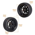 1/10 Onroad Touring Rc Car Wheels & Rubber Tires Set. Will fit 1/10 onroad rc cars 100% Brand New Material: Rubber Tires and Plastic Wheel Rubber Tires Diameter: 64mm / Width:26mm Wheel Diameter: 52mm / Width: 26mm Wheel Hex Drive: 12mm 4xWheel and 4xTires Complete, Insert Sponge Wheels and tires no glue and can be split Note: Wheels and tires no glue and can be split This color photographs and pratical items May have little color difference! The wheels and tires are not stuck together, and must be glued before use. Please check the tire size carefully before purchase, and make sure that it is shared with your model car before payment, so as not to load your model car and return it, thank you, I wish you a happy shopping!