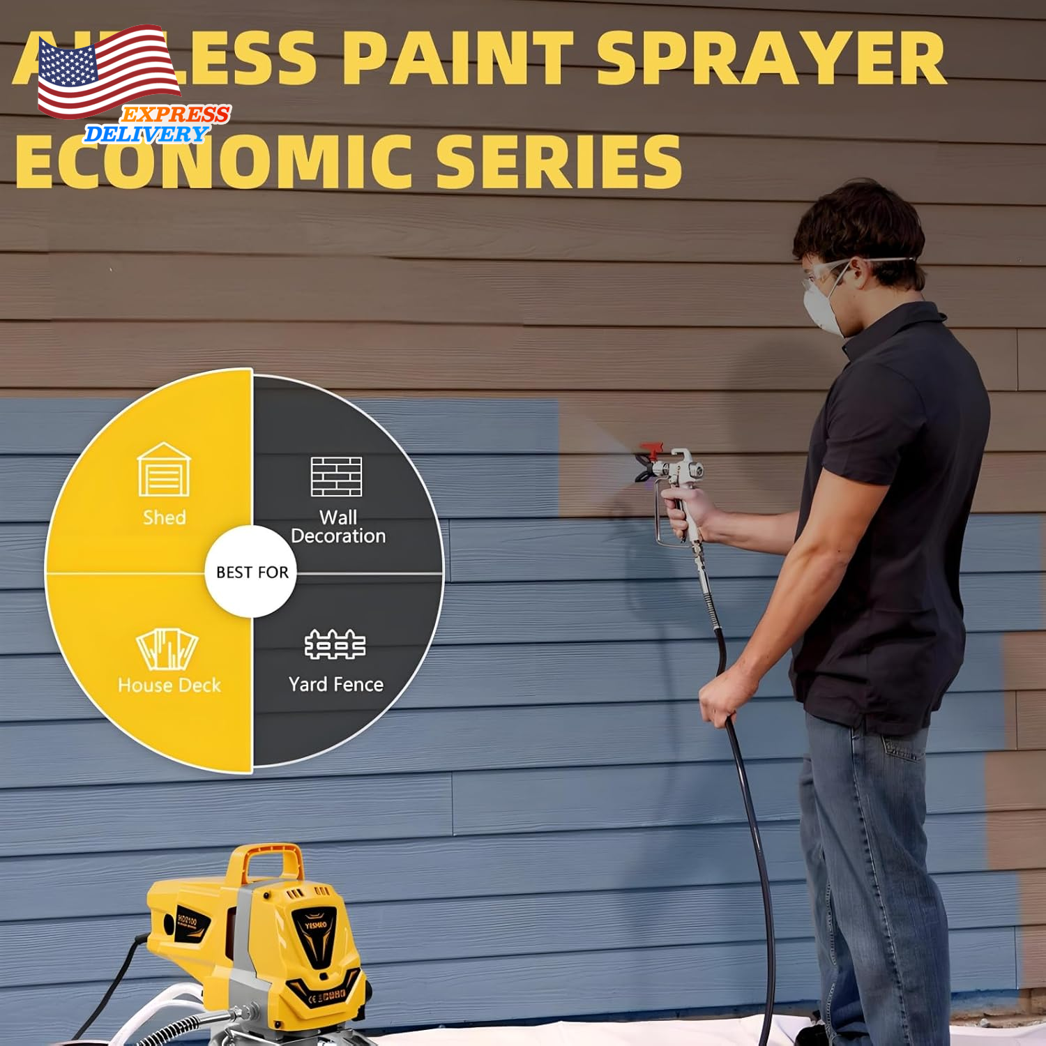 Store New Arrivals Add to Favorite View Feedback Contact 1100W Airless Paint Sprayer for House Paint 3300 Psi Low Overspray DIY Handyman Description Item model number AUS0012 Style airless paint sprayer Power Source ac Maximum Pressure 3300 Pound per Square Inch Color Airless Paint Sprayer Product Dimensions 15.35 x 15.35 x 15.35 inches Material Stainless Steel Country of Origin China Hose Length 25 Feet Tank Volume 5 Gallons Item Weight 20.8 pounds Recommended Uses For Product Painting Included Components Nozzle Adaptor, Instruction Guide, Nozzle, Strainer Paint Like a Pro - Ditch the rollers. Our 1200W airless paint sprayer delivers 5X faster coverage with ultra-fine, even coats—no bubbles, no wasted paint. With 3300 PSI power, it delivers smooth, professional finishes on walls, fences, furniture, and more. Perfect for walls, fences, or furniture, it handles oil & water-based paints straight from the can. Just point, spray, and transform any space in minutes! Power Through Any Project – Big or Small.From interior walls to outdoor decks, this 1100W beast handles it all. Tackle 10-gallon jobs effortlessly with 3300 PSI power and a 25FT hose—no ladder needed thanks to the 20"extension rod. The reversible nozzle cuts overspray by 55%. Ideal for DIYers & pros painting houses, decks, or furniture —spray up to 300 gallons/year with ease! Spray Smarter – The DIY Game-Changer.Why waste time rolling when you can spray 5X faster?? This airless Sprayer saves hours of work, and leaves a smooth, pro finish.The high-polymer seals & anti-clog nozzle ensure even, bubble-free coats every time. Plus, the included goggles & wrenches keep you safe and leak-free. Ideal for oil, latex, and stains—transform any surface in minutes! Everything You Need in One Box – Start Painting Today.Get professional-grade tools ! The kit includes a spray , extension rod, wrenches, tip cleaners, filters, safety goggles, and a manual—everything for smooth, efficient painting. Perfect for homeowners, woodworkers, and DIY enthusiasts craving studio-quality finishes. Clean Up in a Flash – No More Clogged Nozzles.Hate post-painting cleanup? Our detachable design & included cleaners make maintenance quick & hassle-free. Just rinse, wipe, and store—no stuck paint or downtime. The 7.5m high-pressure hose & spare filters mean you’re always ready for the next project! Perfect Gift for Handy Dads & DIY- Surprise him with the ultimate Father’s Day upgrade! Whether he’s refreshing the garage, deck, or furniture, this lightweight, powerful sprayer makes painting effortless and fun. Includes safety goggles, wrenches & cleaners—everything to paint safely and leak-free! 📣NOTE: PLEASE CORRECT ALL THE PISTON AND TUBE AND INSERT IT INTO THE CORRESPONDING POSITION IN DEPTH TO ENSURE THE LOCK, SO AS TO AVOID THE INFLUENCE OF THE SEAL AND THE LEAK.Please be sure to read the instruction manual carefully before using.If any issues arise, don't hesitate to reach out. We're committed to finding solutions quickly, saving you from the stress of returns or exchanges. Product Description Airless paint sprayer has a 1100W motor that delivers a flow rate of 1.2L/min.It makes painting so much faster and easier on the body compared to brushes and rollers. The Airless Paint Sprayer operates at a high pressure of 3300PSI for rapid coverage of large areas.It has a maximum flow rate of 0.24 GPM and includes a standard 515/517 nozzle. [SPRAY HOSE] 25 Foot long for easy reach across painting projects Non-kink hose Cold does not harden [TWO USE METHODS] Just press the switch, it has a direct nozzle and a 20-inch extension rod, which is convenient for you to spray at close and long distances. 1 Start Spraying 2 How to USE 3 How to PRIME 4 How to CLEAN 5 KNOW YOUR CONTROLS User-friendly Design & WIDE APPLICATION TERIOR HOUSE Professional remodeling,recommend this machine to anyone that is serious about their project but don't want to over spend on equipment that they might not use everyday Entire House This sprayer enough for DIYers looking to take their painting skills to the next level. Garage You'll be able to complete more painting projects around your home with this great paint sprayer! Cedar Fence There is little need for any touch-ups with a brush after the main spraying is complete. Deck Refinish old furniture. Wall spraying Even though you not a professional painter, you also able to achieve a smooth, consistent finish on the walls. It caters to home renovators, woodworking enthusiasts, construction contractors, and DIY enthusiasts. What necessary steps should I do before using it? 1.Wear the protective equipment, 2.Read the instructions carefully, and install the machine correctly. 3.Be sure to do purging and priming the Sprayer before use, and perform air and lubricating oil. How to ensure uniform spraying? Keep the spray perpendicular to the surface and about 10 to 12 inches away. Otherwise one end of the pattern will be thicker than the other. How often should I clean my airless sprayer? We suggest that you better clean the machine after every use, including the filters, housing, and tip. What should I do if there is no paint suction happening when the machine is running? During initial use, the inlet steel ball may get stuck. Please according to the instructions to push the inlet steel ball. Secondly, if the clamp of the suction hose is loose, please tighten it and ensure that all connections are properly tightened. ABOUT US We offer the best prices around on high quality products. Our E-store includes media such as books, movies, music and games while offering electronics, toys, sporting apparel, clothing, tools, general home, garden items and more. SHIPPING We are always working hard to ensure your package arrives as soon as possible. Please understand that some factors like weather, high postal traffic, and the performance of shipping companies are outside of our control. We offer free shipping to the lower 48 states and 