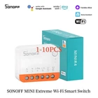1-10pcs SONOFF MINI R4 WiFi Switch Module 2-Way Control Light Switch EWelink APP Control Smart Home Automation Via Alexa Google Description: Model:MINIR4 Dimension:39.5x33×16.8 mm casing material: PC V0 Wifi:IEEE 802.11blg/n 2.4GHz Input:100-240V ~ 50/60Hz 10A Max outputL100-240V ~ 50/60Hz 10A Max Specifications: 【Super Tiny Size】Its compact size allows it to be installed in various mounting boxes, including the smallest European standard. 【External Switch Control】Easily connect to the momentary switch, door exit switch, SPDT switch, latching switch, and even dry contact sensors. 【Detach Relay Mode】MINIR4 has “detach relay” mode, which means the states of external switches and relay are separated, so operating the external switch button won’t affect the relay state. 【eWeLink-Remote Control】MINIR4 is a smart switch with the gateway function of “eWeLink-Remote”. You can add “eWeLink-Remote” sub-devices, R5 and S-MATE, after pairing with MINIR4, both R5 and S-MATE can act as remote controllers to control MINIR4 locally through the eWeLink-Remote signal. 【Safe & Reliable】TÜV, CE, and FCC certifications ensure a safer and more reliable product. Package Included: 1*Smart Switch