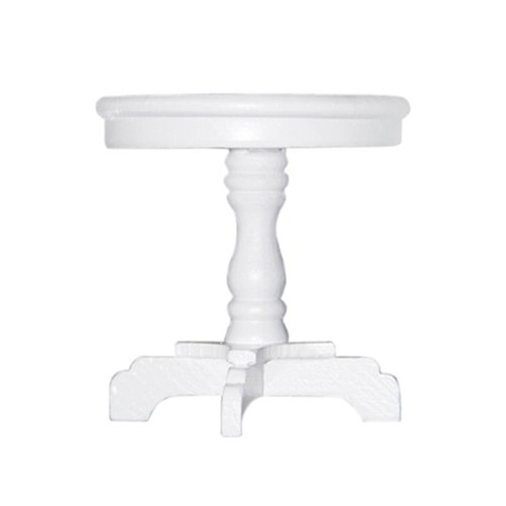 Miniature White Wooden Round Coffee Table for 1:12 Scale Dollhouse