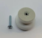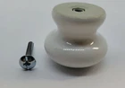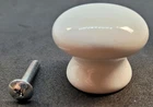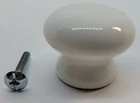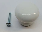 White PORCELAIN KNOB Overall: 1-1/2" Diameter x 1-1/4" Projection Bottom Radius is 1-1/8th Inch Diameter Sold Individually --- Includes one 8-32 Machine Screw for attaching from back. FK-5685