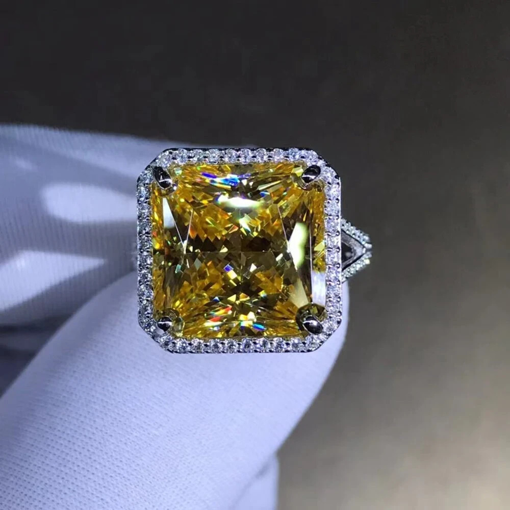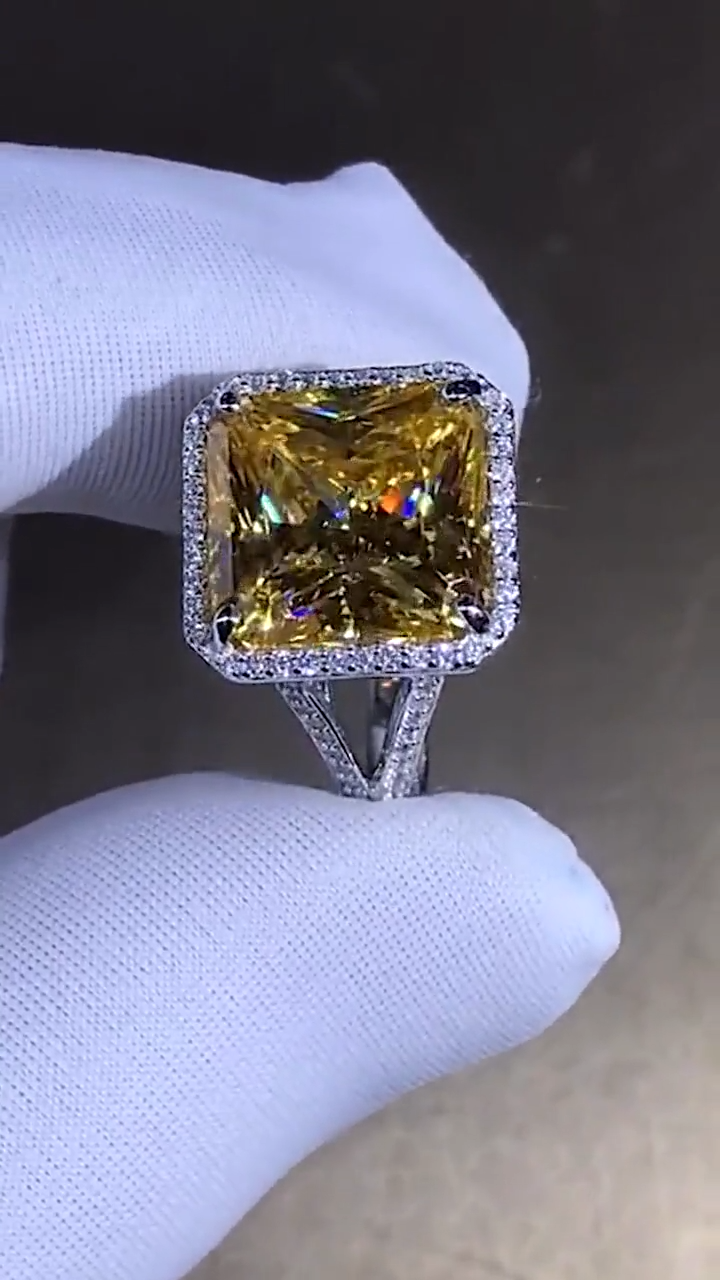 11.5 Carat Square Radiant cut Moissanite Deep Yellow VVS Halo Split Shank Ring ๐ Available Metals: A) 5X Platinum Vermeil, B) Solid 10K Gold, C) Solid 14K Gold, D) Solid 18K Gold, E) Solid 950 Platinum. โ HIGHEST QUALITY Certified White Gold, Rose Gold, Yellow Gold & 950 Platinum. (Not Trash). ๐ Ring Size: 2,3,4,5,6,7,8,9,10,11,12,13,14,15,16 and anything between these ring sizes available. It could be 1/4, 1/2, or 3/4. We Fit It to your Exact Finger Size no matter what size you want. ๐ Main Stone: HARDEST Quality VVS GRA Certified Hand Cut Moissanite (Pass Diamond Testers) โจ Side Stones: Premium Quality VVS Moissanite. (Pass Diamond Testers) ๐ Certified: GRA - GRC ๐ Polish: Excellent Polish. Shiny & Clean for Maximizing Sparkles. โฆ Cut: Hand cut Excellent cut & Symmetry with Crisp & Sharp Edges/Corners. ____________________ ๐ 100% Handmade with GORGEOUS & Accurate Details. Itโs an Art, not only a Valuable Material. ๐ 60 Days Money Back Guarantee for Any Reason even if you don't Fall In Love with it. ๐คฏ FREE LIFETIME Main Stone Warranty & Side Stone Replacement. (No Color Change). ๐ FREE LIFETIME Jewelry Cleaning & Re-plating. ๐ Hypoallergenic. Skin Friendly. Doesnโt cause any type of Allergies. ๐ Customizable with/to Your Favorite Stone/Jewelry Type & Shape. ๐ FREE STUNNING Random GIFTS On Every Order (we sell them for +$200 up to over +$700). ๐ฅฐ Amazing Wooden Gift Boxes for Your Main Jewel & its Gifts. ๐ฅณ Gift Wrapping Available (we wrap with no tags or receipts, ready to present). ๐คฉ VIP Customer Service to Make Your Dreams Come True in the Most Fantastic Way. ๐ FREE SUPER FAST FedEx Express Shipping. ____________________ ๐โ + Our 5X Platinum Vermeil: Platinum is 9.4 times RARER & slightly more DURABLE than gold. Rings with platinum end up more EXPENSIVE than gold because the DENSITY of platinum is a lot HIGHER and the QUALITY is EXTREMELY PURER. Rings THICKLY plated FIVE TIMES with platinum offer MUCH STRONGER PROTECTION against wear and scratches than gold plated jewelry. Therefore they LAST the LONGEST while giving you a SHINY LOOK ALL THE TIME. ๐โ + Our Rare Stone Quality: Here you have the NATURAL looking color of the diamonds in a RARE size with extraordinary VVS1 clarityโฆ Weโre offering the GREATEST QUALITY and VALUE at the BEST PRICE with this design by using very SPECIAL types of GRA Certified Moissanite stones. Natural diamonds in this color, clarity and size are super rare and very hard to find. Some of them easily cost over $10,000 per carat. (please message me for natural diamonds like this color, size and shape so I can give you the accurate price based on your preferences) ____________________ ๐ข๐๐ FREE FAST EXPRESS SHIPPING Processing + Shipping = Receiving Time PROCESSING: Only 1 available. This ring will be shipped within 48 hours. (Other sizes require customization for 2-3 weeks. ) SHIPPING: 2-6 days via FedEx Express for FREE โ Youโll get updated with the tracking code, once your package is shipped. โ We ship with insured FedEx only which is very secure. โ An adult signature is required at the time of delivery. _____________________ โ๐๐ CUSTOMIZATION/PERSONALIZATION: Custom orders with me are SUPER EASY & COMFORTABLE, no matter if youโve never done it before or youโve done lots of them. ๐ค I break down everything into small steps. And we go through the steps one by one together. On each step, youโll get to pick or guide me from the options I represent. ๐ Once we get to the end, your dream comes true. ๐คฉ๐ Because every single detail is just exactly what you want. ๐๐ ๐จ HOW TO DESIGN YOUR RING: A โ Send me some/one image similar to your idea. Or tell me whatโs your favorite shank, profile or stone? So I can show you some options to choose from. B โ Next, I will start designing it right away. Iโll send you some screen shots from what I designed. We can adjust any part of it together, until itโs exactly the way you want it to be. C โ After we get to the ideal conclusion, Iโll render several Ultra High Quality 3D images and a 4K video, so you see what the end result is gonna look like in reality. D โ The moment you approve everything, we start making it. Once itโs finished, weโll ship it the same day. + 3D IMAGE SAMPLES: Before you order yours, you can ask me for some samples of the 3D rendered images and videos. Youโre gonna absolutely love the quality, because they look like real rings. ๐คฉ๐ + Designing your dream ring with me is gonna be a fantastic experience. While you just sit and order, youโll watch how I take care of everything from your idea to the end product in the SIMPLEST & GREATEST way possible.โ โ------------ ๐ AVAILABLE GEMS: All stones are available - Colorless & Colorful Moissanite or Simulated Moissanite. Natural & Lab Grown Diamonds in Colorless or Colorful. Natural and Lab made Emerald, Ruby, Sapphire, Amethyst, etc. Just ask! ๐ฅ AVAILABLE METALS: All metals are available - 925 Sterling Silver, 5X Platinum Vermeil, 9K Solid Gold, 10K Solid Gold,14K Solid Gold, 18K Solid Gold (in Rose, White or Yellow), Platinum 950. ๐ AVAILABLE MATCHING PIECES: We can make matching pieces for this product. Engagement Rings, Bridal Sets, Wedding Bands, Earrings, Studs, Hoops, Bracelets, Bangles, Necklaces, Pendants, and anything youโd dream of. We can design all to set with this item. ๐จ๐จ๐ง๐ฆ AVAILABLE OTHER JEWELRY: We make jewelry as per occasion and celebration like birthdays, birth months, anniversaries, motherโs day, valentine's day, fatherโs day, memorials, thanksgiving, zodiac signs, graduation days, and many more per your request. ____________________ โโโโโ 5 STAR PRISTINE PROMISES: โฆ๏ธ 100% Satisfaction Guaranteed โฆ๏ธ Ethically Sourced โฆ๏ธ FREE Lifetime Ring Resizing โฆ๏ธ FREE Complimentary ENGRAVING โฆ๏ธ 10