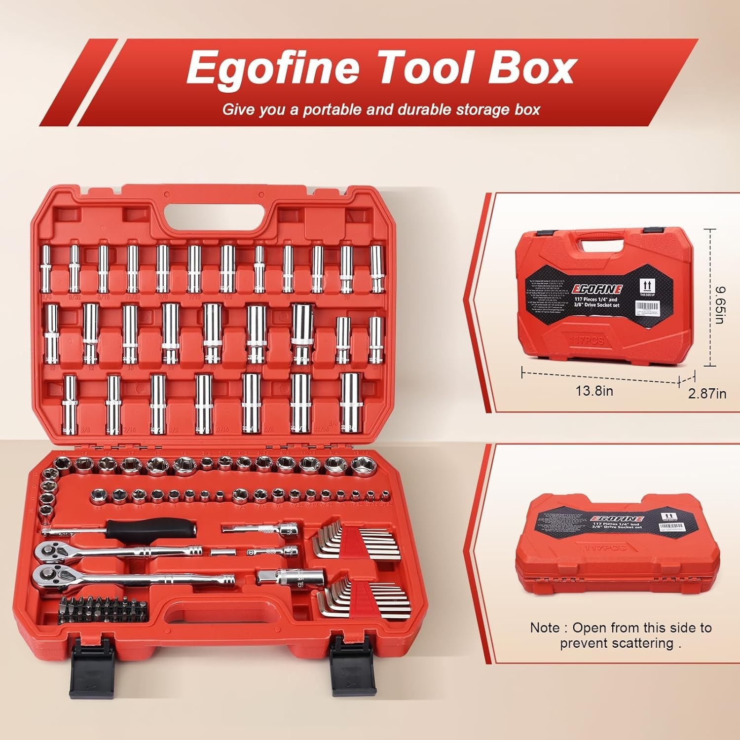 117-Piece Chrome Vanadium Socket Ratchet Set with Extensions for Auto Repair ‹ › ‹ › ‹ › ‹ › ‹ › ‹ › ‹ › ‹ › ‹ › 117-Piece Chrome Vanadium Socket Ratchet Set Your Complete Auto Repair Solution Key Features: 117 pieces, including SAE and metric sockets with 3/8 and 1/4 inch drive. Crafted from heat-treated Chrome Vanadium Steel (CR-V) for durability and extreme torque strength. Chrome polished surface for maximum corrosion resistance and easy cleaning. Conveniently marked lettering for quick identification of sockets, even in low-light conditions. 6-point socket design prevents fastener damage and minimizes rounding risks. Includes 2" and 3" extension bars for flexible access to narrow spaces. Storage in a wear-resistant toolbox that ensures neat organization and easy transport. Benefits: Engineered to withstand heavy use in professional and DIY settings. Effortlessly tackle various maintenance and repair tasks. Secure grip and design make your work faster and more efficient. Perfectly organized tools mean you can focus on the job, not searching for the right piece. A thoughtful gift choice for various occasions, including Father's Day, birthdays, or anniversaries. Why Choose Our 117-Piece Socket Ratchet Set? Elevate your toolbox with this comprehensive 117-Piece Chrome Vanadium Socket Ratchet Set, designed for those who demand precision and durability in their tools. The advanced materials and thoughtful design features ensure that you'll have everything you need for car repairs, home improvement projects, and beyond. The organized storage makes taking your tools on the go easy and convenient. Don't compromise on quality — equip yourself with a socket set that meets your high standards. Order your set today and experience the difference! Shipping Free & Fast Shipping - We offer free shipping to most of the USA with a normal delivery time of 3-7 days. However, due to the current situation, additional delivery time (up to 3 weeks) may be required for some items. Alternative Carriers - We may use alternative carriers (e.g. USPS, FedEx, UPS, etc.) to ensure your package arrives safely and on time. Due to the use of multiple carriers, we are unable to provide a tracking number automatically. Handling Time - Orders are processed and shipped within 1-2 business days of receiving cleared payment. Shipping Restrictions - Shipping to Alaska, Hawaii, Puerto Rico, Guam, and other US territories may incur shipping charges or delivery restrictions. Please contact us before ordering, or your order can be refunded/cancelled. State Restrictions - There may be restrictions based on your state of purchase. For example, certain items may not be shipped to California due to state regulations. Contact for Tracking Updates - If you require tracking updates or have any concerns about the delivery of your order, please feel free to contact us, and we will be happy to assist you. Return 30-Day Hassle-Free Returns - We want you to be completely satisfied with your purchase. If you are not, you can return the item within 30 days of receiving it for a full refund or exchange. Easy Return Process - To start a return, simply contact us and we will provide you with a prepaid return shipping label and detailed instructions. Restocking Fee - There are no restocking fees for returns. However, the buyer is responsible for return shipping costs if the return is not due to a seller's error. Refund Processing Time - Refunds will be processed within 5 business days of receiving the returned item in its condition. Payment We accept all major credit cards, PayPal, and Apple Pay for your convenience. Your payment information is secure and encrypted to ensure a safe and seamless transaction. Please complete your payment within 3 days of purchase to avoid any delays in shipping. Feedback Your feedback is extremely important to us. We strive to provide the best products and customer service possible. If you are satisfied with your purchase, please take a moment to leave us a positive review. If you have any concerns or issues with your order, please contact us before leaving negative feedback. We are committed to resolving any problems and ensuring your satisfaction. Contact Us If you have any questions or concerns, please feel free to out to our customer support team. You can contact us through the eBay messaging system. We are available Monday to Friday, 9:00 am to 5:00 pm EST, and we will do our best to respond to your inquiry within 24 hours. Buy it now and enjoy a pleasant shopping experience! Item Diameter: 1/4 inch Item Weight: not specified Unit Quantity: 1 Features: Additional Bits,Heat Treated,Chrome Vanadium Steel,Polished Surface,Labeling Marks,6-Point Flank Drive Design,Extension Bars,Wear-resistant Tool Box,Portable,Neat Organization,Multi-purpose,Grease Resistant,Stain Resistant Material: Chrome Vanadium Steel Type: Socket Set Number of Pieces: 117 Size: 1/4 inch Socket Type: Standard Length System of Measurement: Metric/Standard Action: Ratcheting Color: Red
