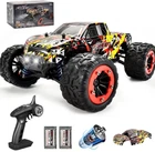 [Improved & Well- Designed RC Car] This 1/18 Scale 4WD remote control car was updated in 2023 and now features independent suspensions, an improved robust modular chassis, a cool LED headlamp, and a well-designed beauty hub metal sheet. Ideal Unique Christmas Gifts for Boys and Girls! [High Speed & 2.4Ghz Radio Control] The off-road RC truck can reach high speeds of 40+ km/h with its superb and quick brushed 380 motor, providing drivers with exhilarating street-bashing delight. The 290-foot steady control range of the 2.4 GHz full function proportional no signal interference radio control system makes it simpler for any level of enthusiast to operate. [Rechargeable Batteries for Extended Fun time] Our monster truck comes in a ready-to-run version that is equipped with classic ball bearings, solid drive shafts, and a high-quality gear differential. It is perfect for RC hobby drivers. The cars are powered by T-plug rechargeable battery packs, extending your racing time to 40 minutes. [Waterproof Electronic Speed Control] This all-terrain remote-control truck features an electronic speed control that is IPX5 splash waterproof and has outstanding off-road performance. The radio-controlled car can be driven on any surface and in any weather over asphalt, smooth dirt, loose gravel, short grass, in the sun or the rain with its 4x4 traction and aluminum-ringed shocks. [High Performance] You may enjoy thrilling drifting, faster cornering, and stunting action because of a powerful drivetrain system, high-quality components, and tires with more grip. This rc car is a great toy for boys and adults alike as it is easy to use, more robust, quick, and funny. [Warm Tips] Be careful not to move the trigger before binding is fulfilled to avoid pairing failure. When the remote control car is not in use, please disconnect the battery from the car in time to reduce battery damage. Any questions, we are always here at your disposal.