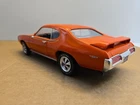 This 1:18 scale diecast model of a 1969 pontiac GTO. It comes with out its original box .No box .this in displayed condition. Littledusty but still very cool in your man cave.driverside door mirroris broken and missing.everthing eles looks ok. So this is being sold as a no box die cast car.comes just as you see it. Please ask any and all questions before purchasing
