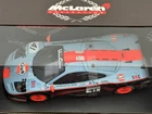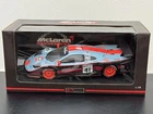 This 1/18 scale diecast model of a 1996 McLaren F1 GTR, is a must-have for any car enthusiast. It comes in the original box with original packaging. Driven by Pierre-Henri Raphanel, Jean-Marc Gounon and Anders Olofsson, the Gulf Team Davidoff #41 car finished second overall and won the GT1 category. The attention to detail in this model is impeccable, from the blue, orange and black Gulf paint scheme to the intricate design of the wheels. This model is suitable for collectors of all ages, from 8 to 17 years and up. The model is perfect for display in any collection.