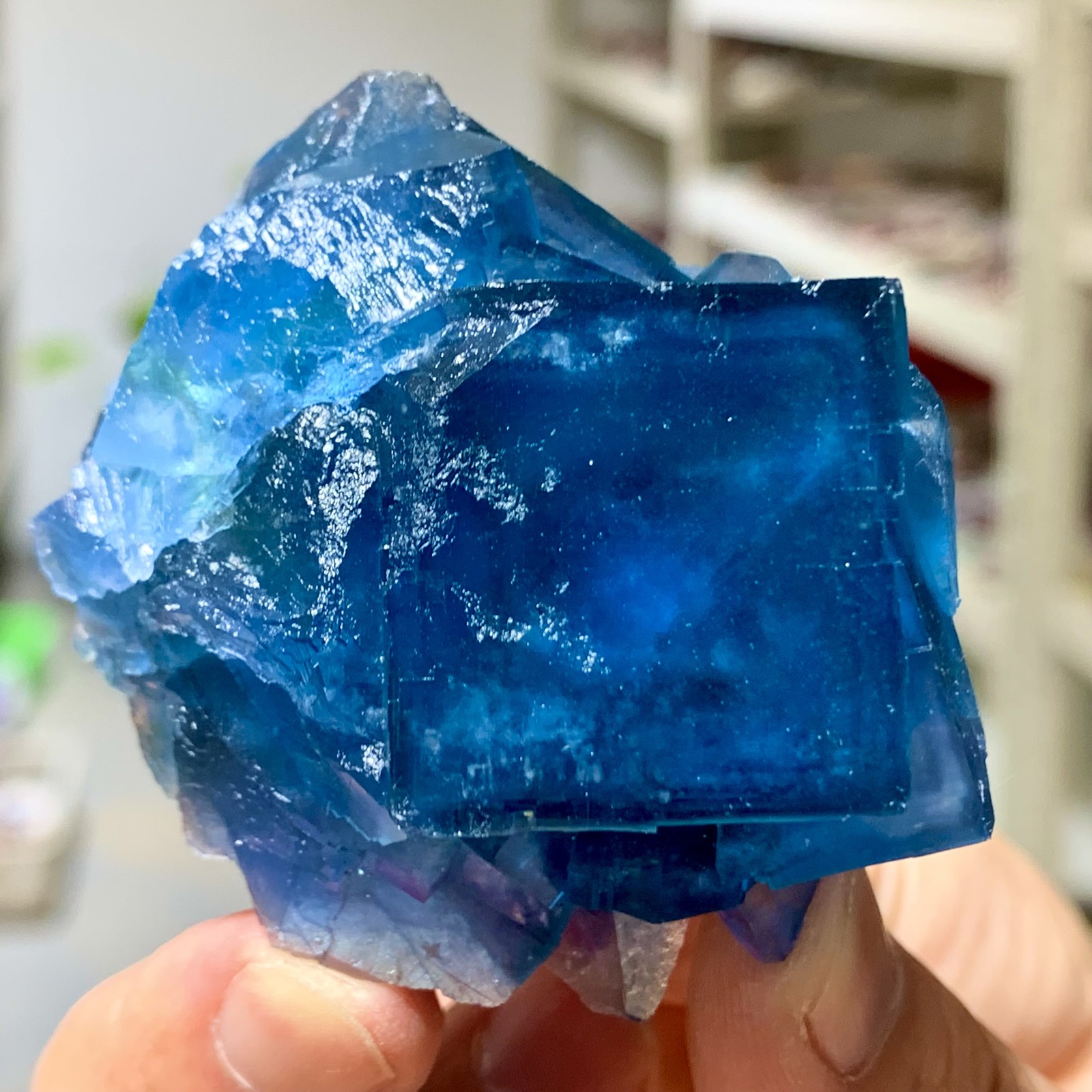 90G Rare Transparent Blue-Green Cubic Fluorite Crystal Specimen from China