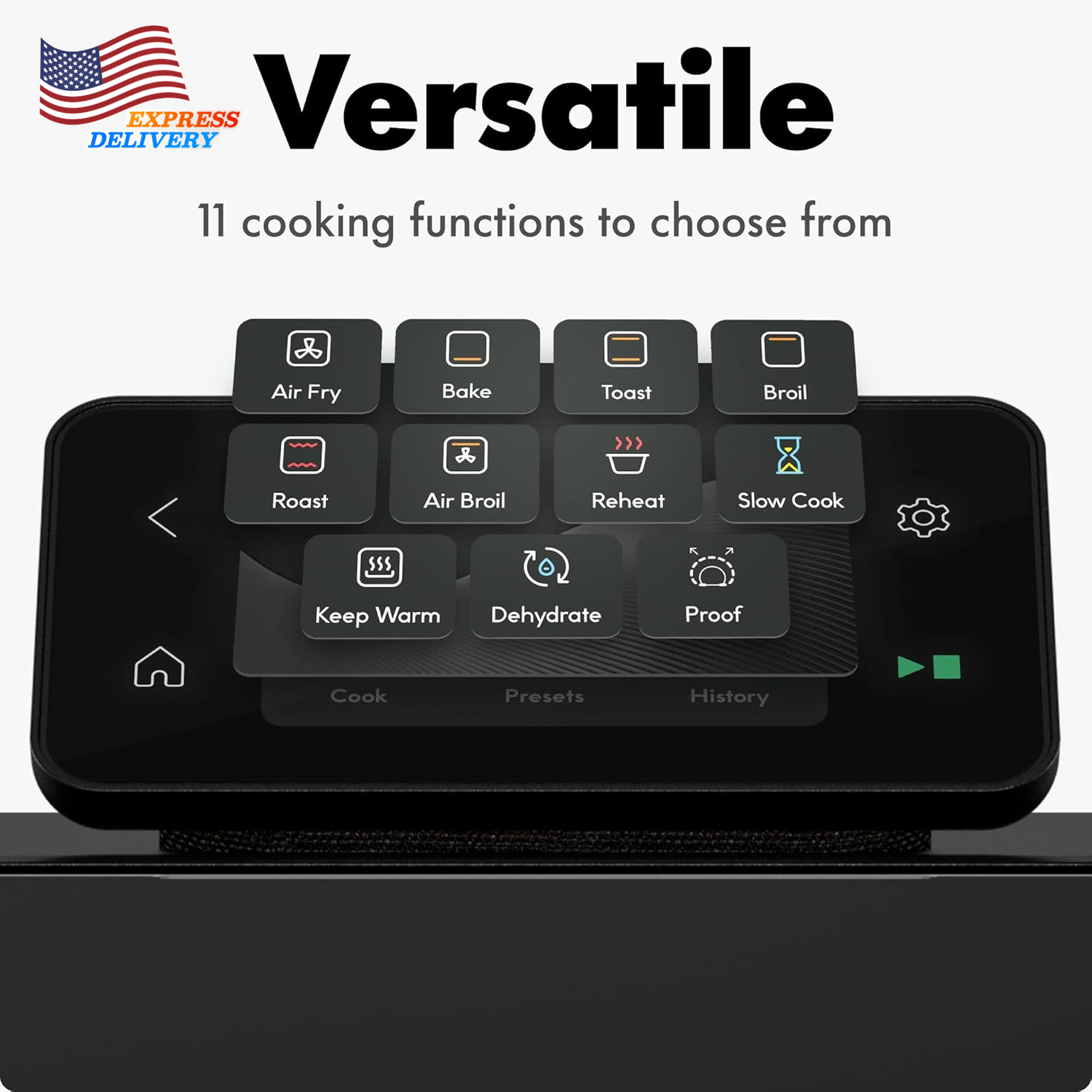 Store New Arrivals Add to Favorite View Feedback Contact 11-In-1 Countertop Convection Oven Bake Broil Air Fry Dehydrate 1750W 25 Qt Description Item model number CQ50-AM Control Type Touch Control Style iQ MiniOven Capacity 25 Quarts Wattage 1750 watts Color Black Included Components Ceramic Egg Tray, Crumb Tray, Wire Rack, Glide Rack, Ceramic Baking Pan, Air fry/Dehydrate basket, Mini Oven, User Guide Door Style Dropdown Door Material Stainless Steel Item Weight 26.15 Pounds Item Weight 26.2 pounds Door Material Type Tempered Glass Model Name iQ MiniOven™ Temperature Range 70-500 Degrees Fahrenheit Size 25 Quart Special Feature function(f) {var _np=(window.P._namespace("DetailPageProductOverviewTemplatesJava"));if(_np.guardFatal){_np.guardFatal(f)(_np);}else{f(_np);}}(function(P) { P.when('A').execute(function(A){ A.on('a:truncate:po-attribute-truncate-3:updated', function(data) { var isTruncated = !data.truncateInstance.getIfTextFits(); var seeMoreElement = document.getElementById('po-attribute-see-more-id-3'); if(seeMoreElement) { seeMoreElement.style.display = isTruncated ? '' : 'none'; } }) }); })); 11 Cooking Functions, 25-Quart Capacity with Compact Footprint, 5 PFAS-Free Accessories, Pairs with the App, Powerful DC Motor See more Product Dimensions 16.14"D x 16.34"W x 14.41"H 11 COOKING FUNCTIONS: Bake, broil, and roast, but the MiniOven is also an airfryer, food dehydrator, proofer, toaster, and slow cooker with a 70–500°F temperature range; it’s more versatile than a traditional oven! POWERFUL MOTOR: The iQ MiniOven comes equipped with a 3200 RPM DC motor. Roast up to 30% faster than conventional air fryers and cook precisely with varying fan speeds for each function. YOUR POCKET SOUS CHEF: Pair with the free CHEF iQ App on your smart device to program and monitor your cooking from anywhere. With an unlimited range on Wifi, you can keep an eye on the kitchen from the comfort of your couch. THE FREE CHEF IQ APP: Cook Control lets you choose your cooking function or from dozens of chef-tested presets for your favorite meals, as well as tracking your temperature and cook time all from your phone. FAMILY-SIZED MEALS: Take advantage of the 25-quart capacity, which can fit up to a 13” pizza or 6 slices of toast. Use this air fryer toaster oven combo to prepare dinner for the whole family! TOUCHSCREEN CONTROLS: Set up cooking manually using the built-in touch screen panel, featuring haptic feedback and audio alerts for a seamless and effortless cooking experience. PAIRS WITH IQ SENSE: The MiniOven is fully compatible with the iQ Sense Smart Cooking Thermometer, adapting your toaster oven on the fly for perfect results, inside and out. SOFT-CLOSE DOOR: This air fryer oven prevents accidental slamming with a door that automatically slows when closing, natural-tone oven lighting, and an edge-to-edge window to view the entire interior. RACK INDICATOR LIGHTS: When using a preset or certain functions, this large air fryer has lights to show which of the three rack positions you should use for toasting, roasting, or broiling. EVERYTHING YOU NEED: Includes a wire rack, a ceramic PFAS-free baking pan, an air fry/dehydrator basket, egg tray, drip tray, and a unique glide rack as well as a three-year limited warranty from CHEF iQ. Product description ABOUT US We offer the best prices around on high quality products. Our E-store includes media such as books, movies, music and games while offering electronics, toys, sporting apparel, clothing, tools, general home, garden items and more. SHIPPING We are always working hard to ensure your package arrives as soon as possible. Please understand that some factors like weather, high postal traffic, and the performance of shipping companies are outside of our control. We offer free shipping to the lower 48 states and ship within 2 business days of payment, usually sooner. We do not accept P.O. Boxes. Please provide a physical address. For shipping outside of the continental USA, we only use eBay's Global Shipping Program.The item is shipped to KY and then sent to the rest of the world. International customers are responsible for all duties and taxes. Continue to check out in order to calculate costs for shipping the item to your country. Messages regarding eBay's Global Shipping Program MUST be directed at eBay EXCLUSIVELY. RETURNS We offer a 30-Day Return Policy on items which you are not completely satisfied with. You have the option for a full-refund or an exchange of the item. No returns are available on items shipped outside of the USA. PAYMENT We accept PayPal. CONTACT US This page content is yet to come Please ad us to your favorite seller and visit again later Thank You CUSTOMER SATISFACTION We try our very best to make sure every customer is completely satisfied. If there's a problem, message us! We're happy to help. WE ACCEPT Copyright © 2021 AutoDS. | All Rights Reserved