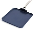 DIAMOND INFUSED CERAMIC NONSTICK: Our signature diamond-infused ceramic nonstick is 5x harder and 10x longer lasting than traditional coatings. LARGE COOKING SURFACE: 11" Griddle Pan provides ample space for cooking. TOXIN-FREE: Free of PFAS, PFOA, lead, and cadmium for healthier cooking. DURABLE CONSTRUCTION: Heavy-duty base prevents warping, wobbling, or degrading over time. VERSATILE USE: Oven and broiler safe up to 600°F for flexible cooking options. EASY CLEANUP: Dishwasher safe for convenient maintenance. COMFORTABLE HANDLING: Riveted stainless steel handle for a secure and comfortable grip. WIDE COMPATIBILITY: Suitable for all stovetops, except induction. METAL UTENSIL SAFE: Durable surface allows use of metal utensils without damage. Give yourself plenty of room for diner fare and everything else with this versatile griddle from Blue Diamond. This pan features Blue Diamond’s signature diamond-infused coating, which is 5x harder and 10x longer lasting than traditional nonstick and metal utensil safe. Diamonds are 4x more heat conductive than copper, so this griddle heats up faster and cleans up easier. The Blue Diamond griddle pan is toxin-free and manufactured without PFAS, PFOA, lead, or cadmium. The riveted stainless steel handle provides a sturdy and secure grip. Dishwasher safe. Oven and broiler safe up to 600°F.